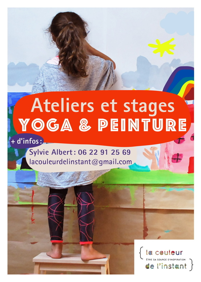 Sylvie Albert professeur de yoga artiste et pédagogue certifiée propose des ateliers dans les locaux de la couleur de l'instant : spécialement conçus pour la pratique du yoga et de la peinture dans la campagne de Pont de crau. Un temps unique pour les enfants à partir de 4 ans en petit groupe. Un moment pour jouer avec les postures de yoga puis exprimer sa créativité avec le Jeu de Peindre. Chaque joueur peint debout sur un support accroché au mur qu'il peut agrandir selon son souhait et se partage avec les autres la table palette de 18 couleurs.