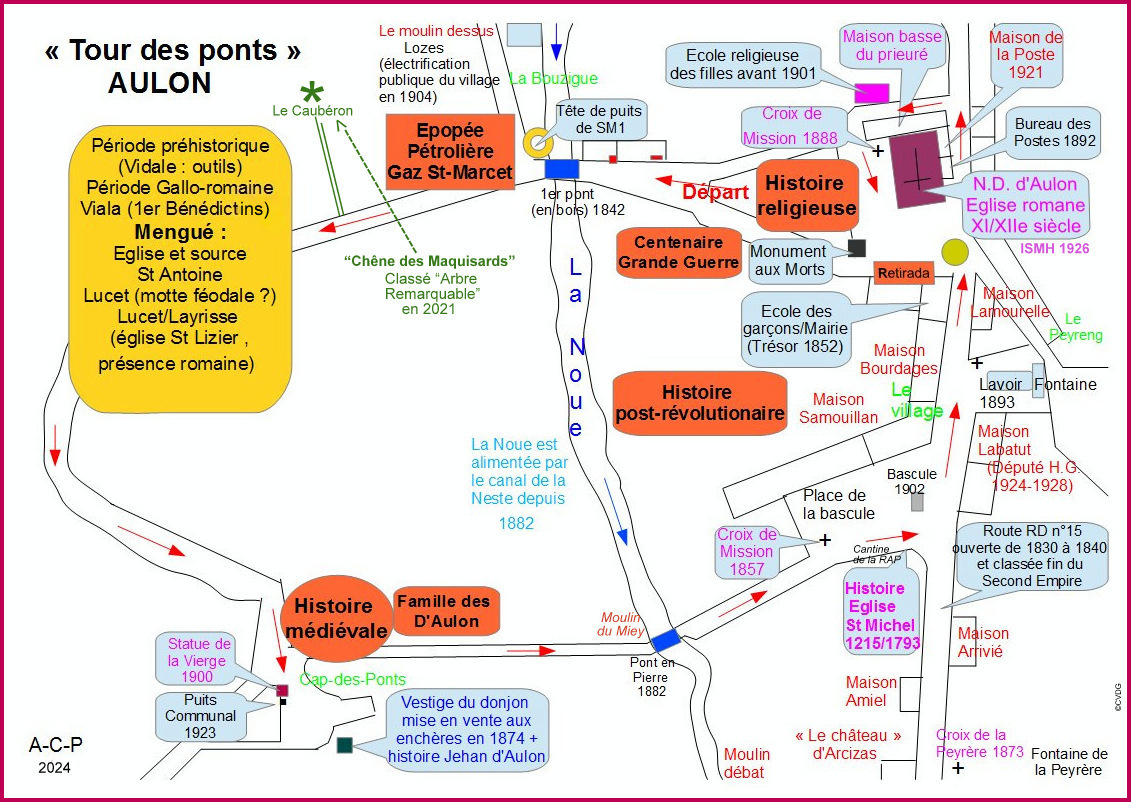 À la veille de la Seconde Guerre mondiale, grâce à l'intuition de géologues et à une forte volonté politique, le 14 juillet 1939, le premier gisement de gaz français est découvert sur les territoires de Latoue, Saint-Marcet et Aulon. Malgré le déclenchement de la guerre, la décision est prise d'exploiter ce gisement de gaz, qui produira jusqu'à la fin des années 1990. Cette découverte a profondément transformé la vie des habitants de cette région rurale. « Des paysans sont devenus des pétroliers », des alsaciens sont venus former les équipes et de nombreux jeunes fuyant le STO et les républicains espagnols fuyant le franquisme ont fourni la main-d'œuvre. La société « La RAP » (Régie Autonome des Pétroles) a été créée pour exploiter et gérer cette découverte. Un petit village de pétroliers est sorti de terre au lieu-dit du Pinat, et une petite raffinerie a été construite pour le traitement du gaz à Peyrouzet (aujourd'hui friche industrielle). Le développement de ce gisement de gaz a donné naissance à de nombreuses entreprises qui se sont ensuite implantées dans le monde entier. La RAP, après son déménagement à Boussens, est devenue ELF, puis ELF-Aquitaine, absorbée plus tard par TOTAL dans les années 2000. À partir de la RAP, la SNPA (Pétroles d'Aquitaine) a été créée, permettant l'exploitation du gisement de gaz de Lacq. Boussens est devenu la base logistique du développement du pétrole saharien. Pendant la visite, ne manquez pas de rendre hommage aux 4 résistants de la RAP tués par les Allemands lors de « l'accrochage de Mengué » le 8 juin 1944, en passant devant une stèle commémorative à Mengué. Ayons également une pensée pour Pierre Angot, le premier directeur de la RAP, décédé en déportation à Buchenwald pour avoir refusé de collaborer avec l'ennemi.
