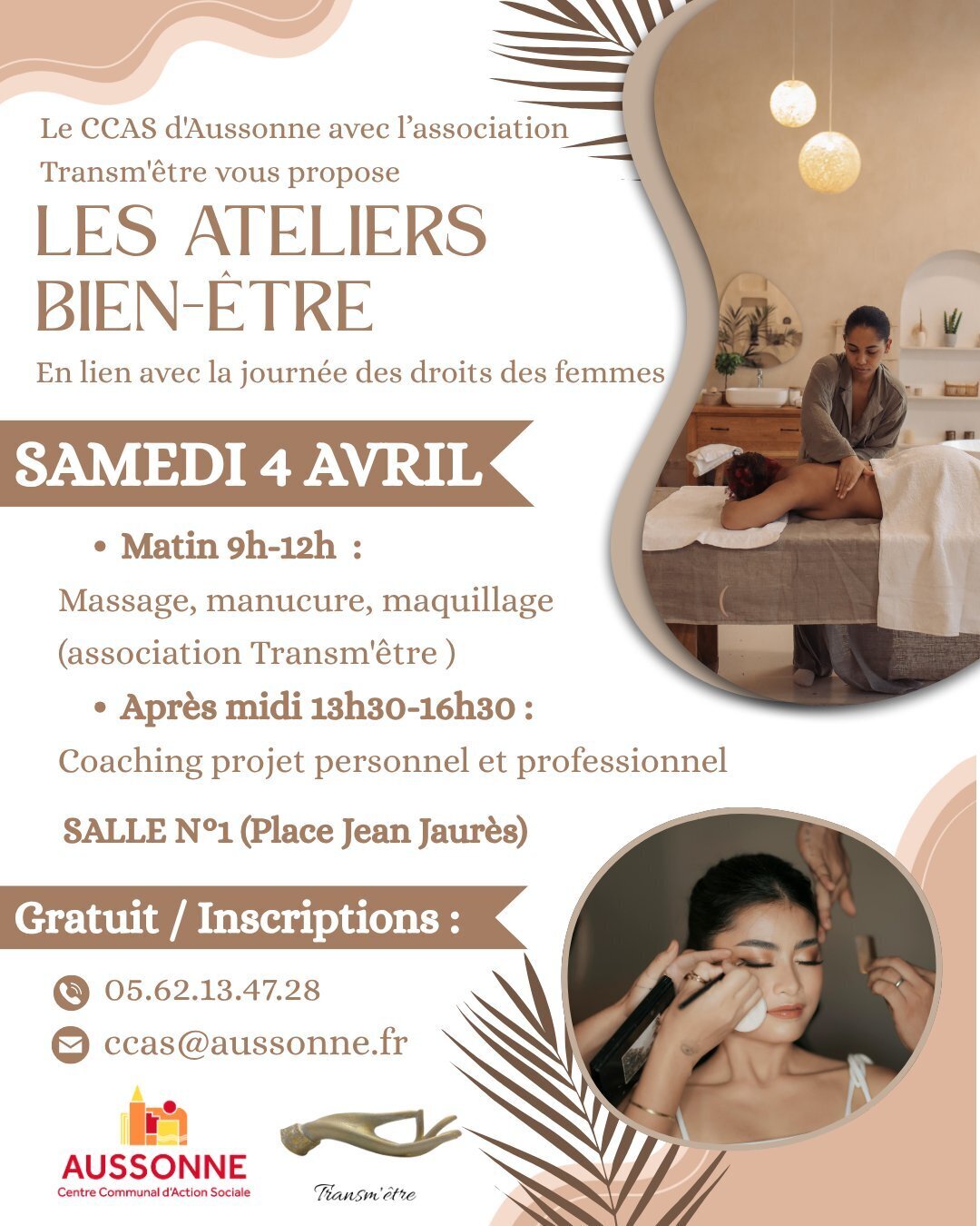 Dans le cadre de la Journée internationale des droits des femmes, le CCAS d’Aussonne, en partenariat avec l’association Transm’être, propose une journée dédiée au bien-être et à l’accompagnement personnel.