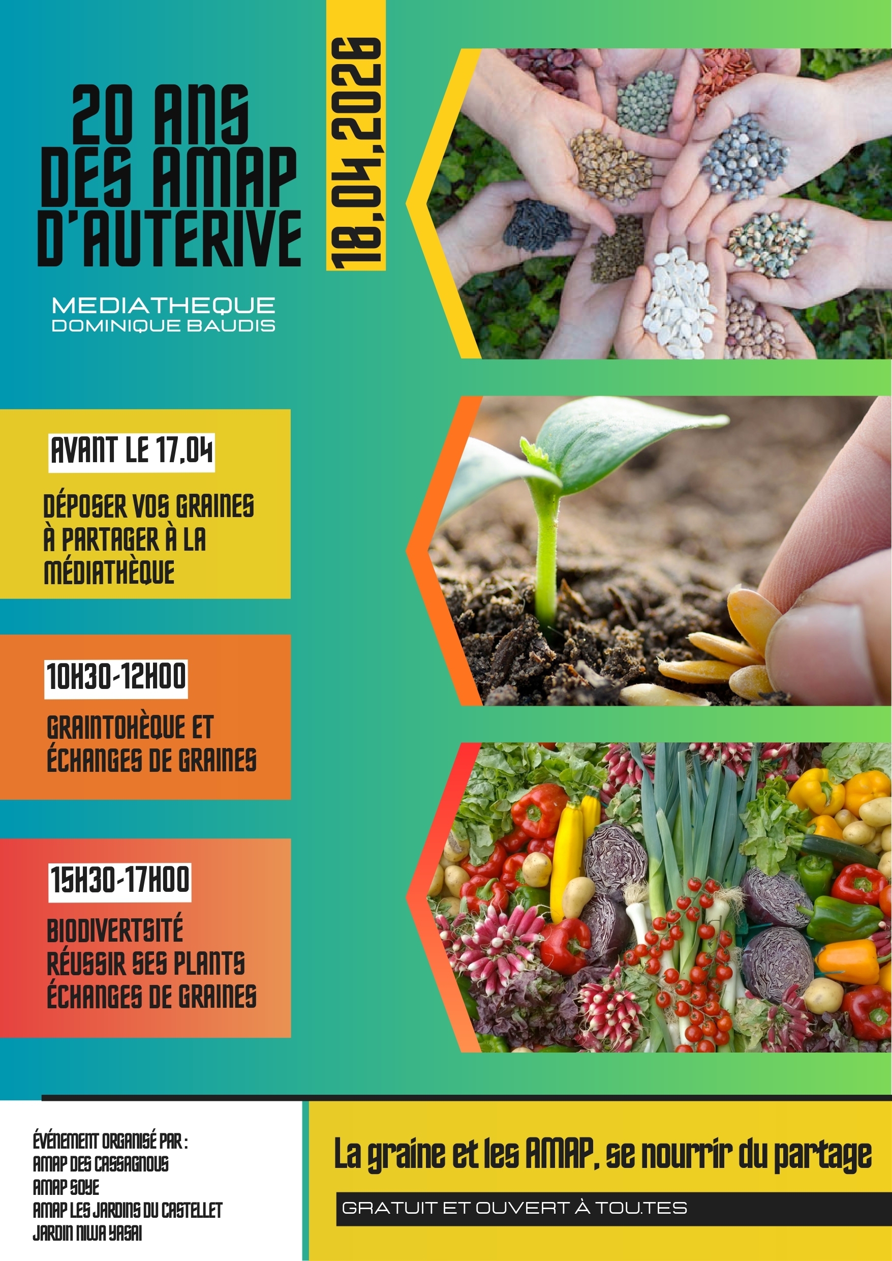 Pour célébrer cet événement, en plus de l'exposition présentée au rez-de-chaussée jusqu'au 05 mai, les 3 AMAP ont concocté une journée spéciale autour du local en faveur d'une agriculture et d'une alimentation durables et solidaires.