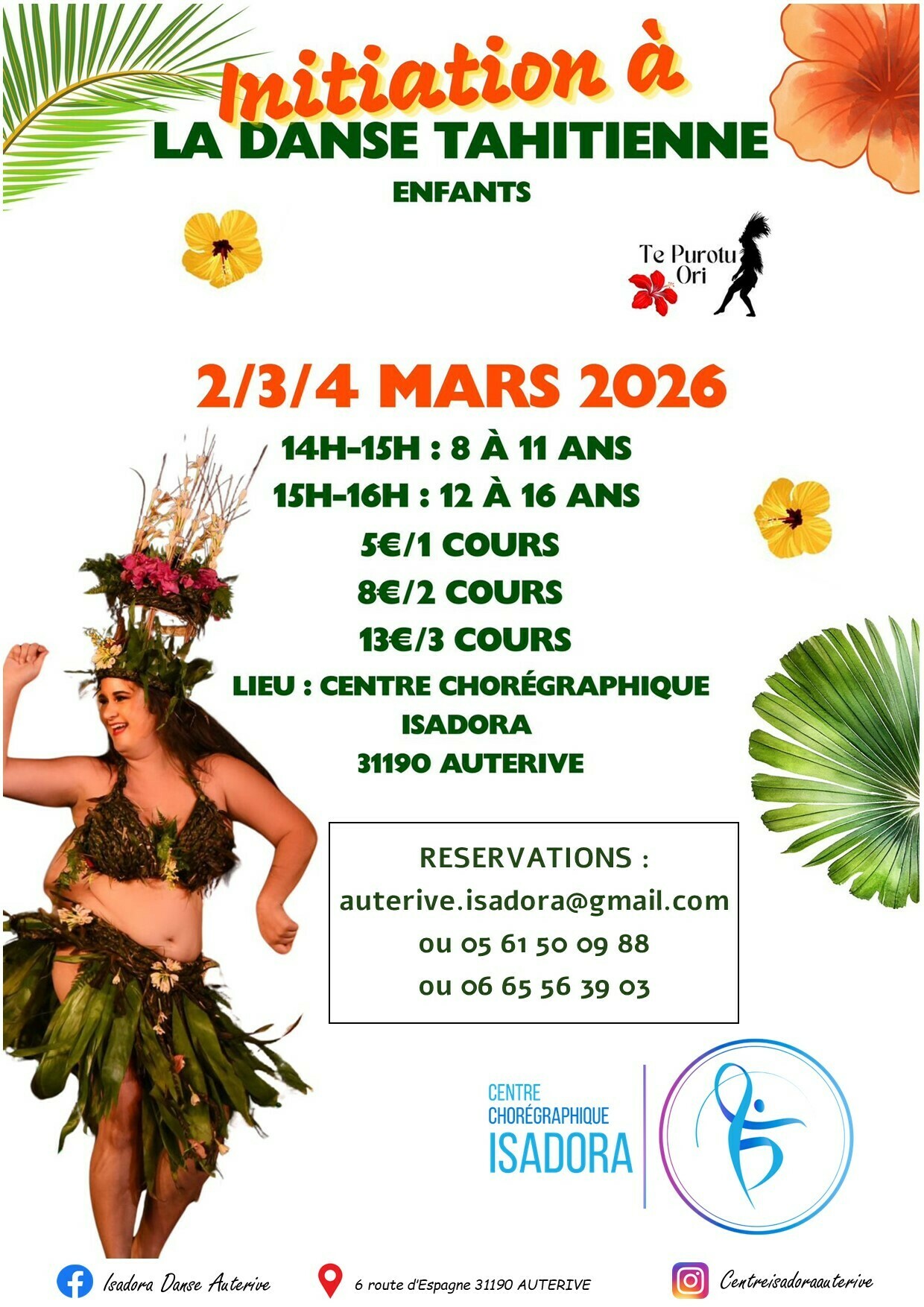 Inscription par mail ou par téléphone.