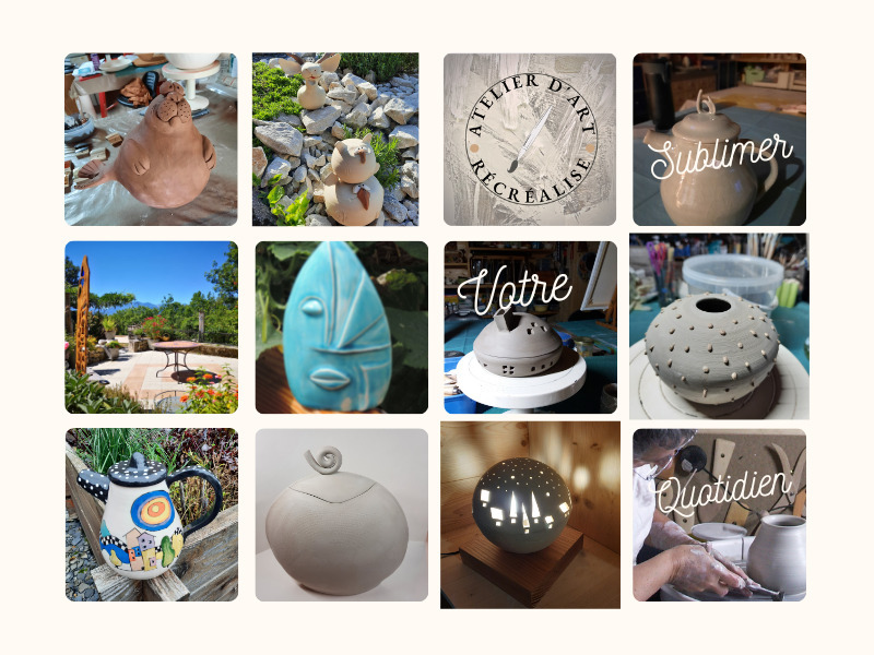 - modelage-sculpture -poterie avec moi-même Lise "Récréalise" mais aussi, vitrail, mosaïque.