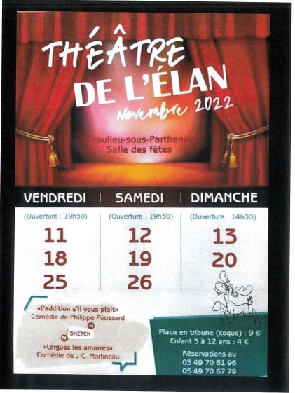 Réservations au 05 49 70 61 96 ou au 05 49 70 67 79