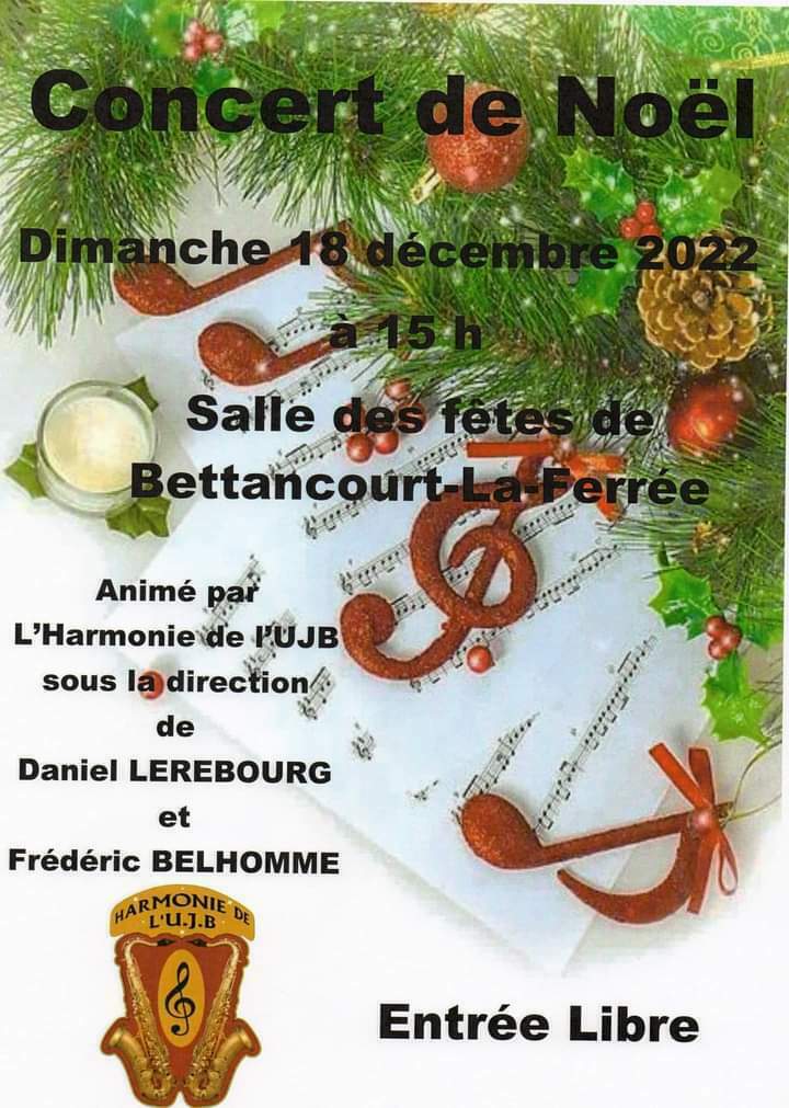 L'harmonie de l'UJB vous emménera dans un univers magique et féérique sur des musiques de noël traditionnelles et vives telles que "Christmas swing" de Dizzy Strafford, Boléro de Noël (suzanne Welters)... ou Aladdin (arr John Mosh).