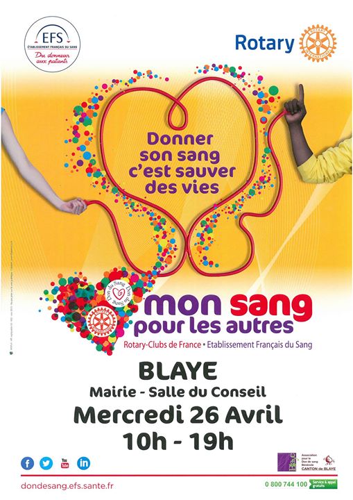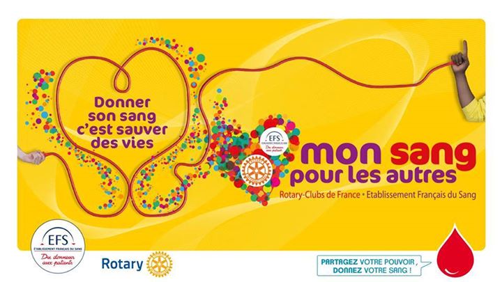Les clubs Rotary et les associations pour le don de sang bénévole se mobilisent aux côtés de l'Etablissement français du sang pour sensibiliser le grand public à l'importance du don de sang lors de collectes de sang événementielles siglées "Mon Sang Pour Les Autres".