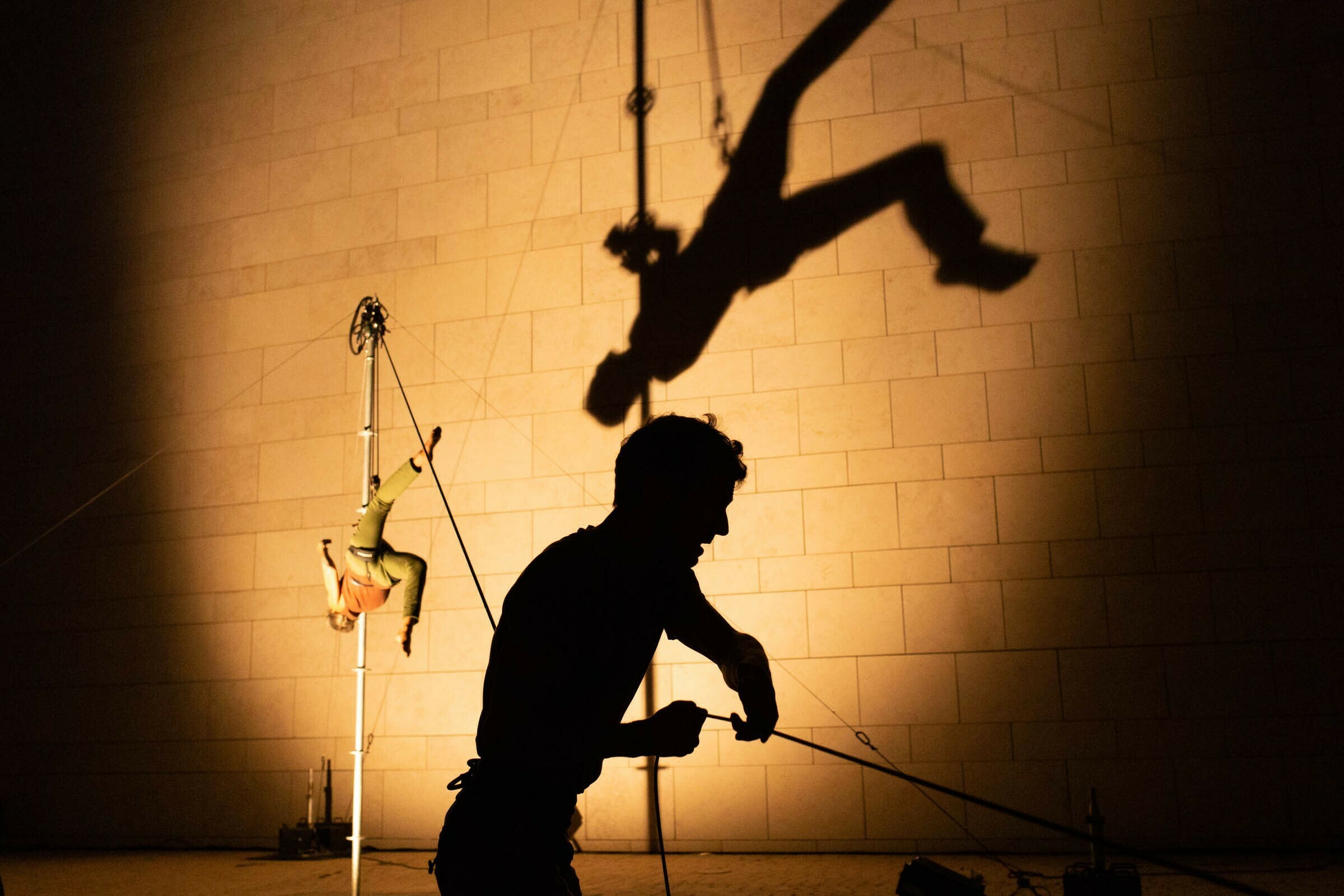 Sortie de résidence L'Angle Disparu : Généralement, le mur est une surface qui se prolonge par une autre surface : le sol, à l’intersection de ces surfaces, au pied du mur, il y a un angle. Le piéton ordinaire voit sa marche arrêtée à cet angle, notre danseuse a la capacité de marcher au sol et de poursuivre très naturellement son évolution au mur. Elle s’adapte seulement par un changement d’orientation qui la fait passer d’une position verticale lors de sa marche au sol à une position horizontale quand elle marche au mur. Cette marche s’accélère pour l’amener à la course et aux sauts. Le mur et le sol ne se distinguent plus, la danseuse évolue sur une surface en 3 dimensions dans une chorégraphie toute en rebonds. L’angle au pied du mur ne limite plus les trajectoires du corps, il a disparu.