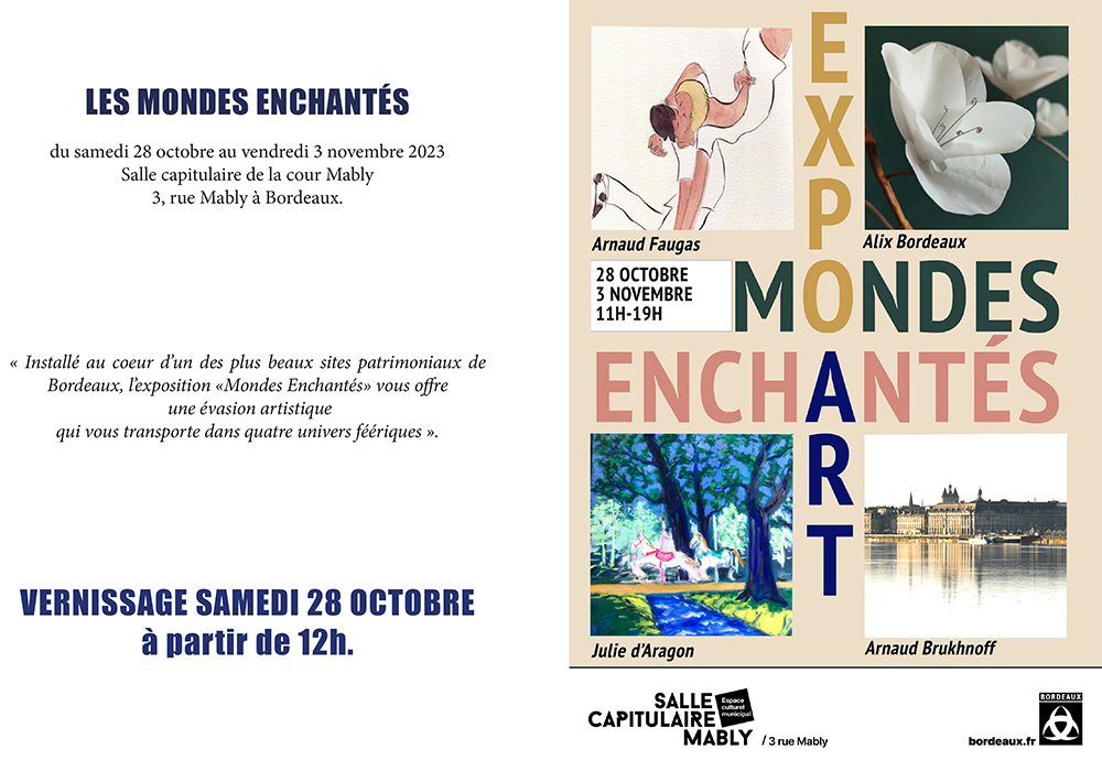 « Installé au coeur d'un des plus beaux sites patrimoniaux de Bordeaux, l'exposition «Mondes Enchantés» vous offre une évasion artistique qui vous transporte dans quatre univers féériques ».