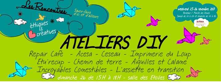 Dans le cadre des Rencontres éthiques et créatives, des ateliers ludiques DIY (Do It yourself) seront proposés par des associations et artisans locaux pour transmettre leur savoir faire.