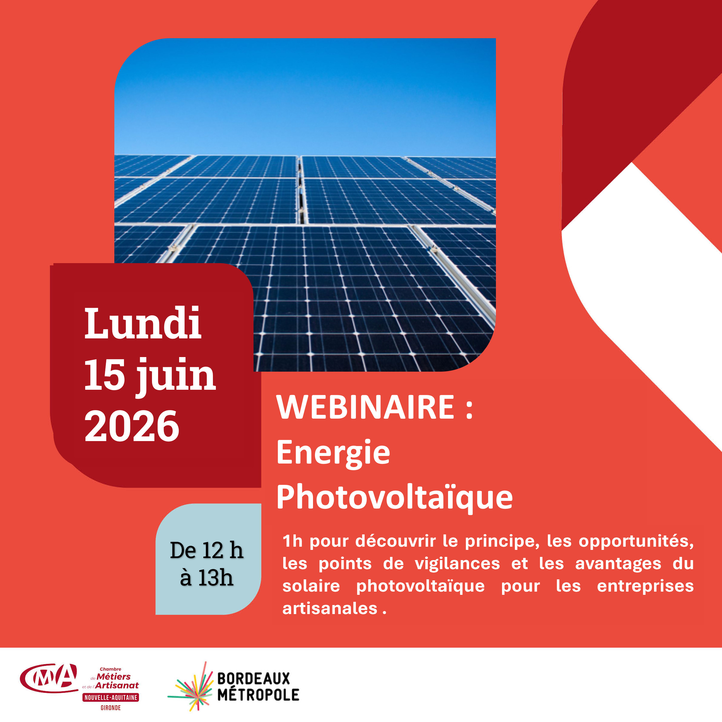 La Chambre de Métiers et de l’Artisanat de la Gironde, en partenariat avec Bordeaux Métropole, vous propose de participer à un webinaire consacré aux économies d’énergie en entreprise :