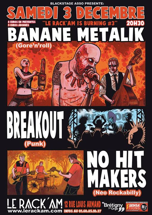 l’énergie communicative de ses concerts. Considéré aujourd’hui comme l’un des fers de lance européens de la scène rock’n’roll, le groupe débarque au Rack’am avec son " Gore'n'roll ", mélange de culture musicale et cinématographique (rencontre des films " Massacre à la Tronçonneuse " et " Freddy ") ; un show à voir au moins une fois dans sa vie !
