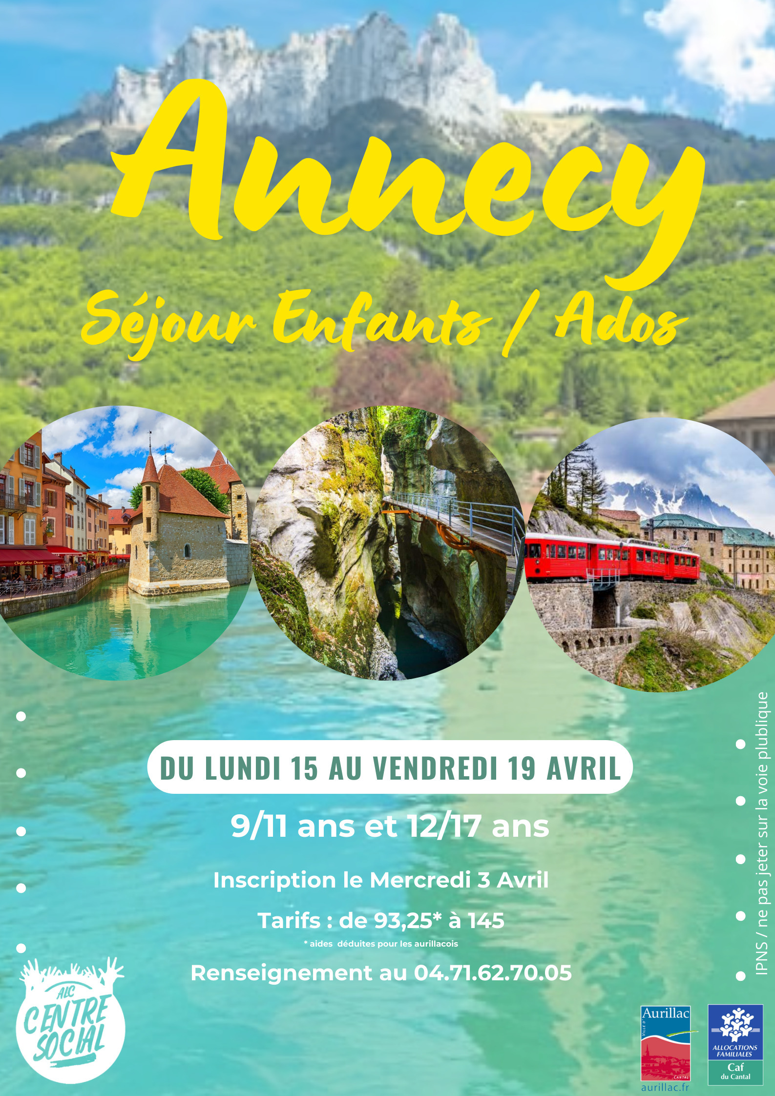 Le séjour se déroulera à Annecy une petite ville des Alpes Française du 15/04/24 au 19/04/24. Durant ce séjour, les jeunes découvriront la vielle ville d’Annecy grâce à un rallye urbain, des activités sportives tels que le tour du lac en vélo et une randonnée et des visites culturelles. Le séjour à Annecy s’inscrit dans une démarche de découverte culturelle et d’activité sportive. Ici, les jeunes vont être emmené à découvrir la vielle ville d’Annecy et son histoire, pour cela des activités et des visites seront organisées afin que les jeunes puissent apprendre et découvrir la culture ainsi que les activités que proposent la commune où ils vont résider. Un rallye urbain sera organisé pour leurs permettre de découvrir la ville, ainsi qu’une visite de la ville de Chamonix avec ça mer de glace et petit train à crémaillère, les jeunes emprunterons également la voie verte qui permet de faire le tour du Lac d’Annecy. En plus de ses activités, l’équipe d’animation mettra en place des activités, des jeux mais également des veillées de qualités afin que les jeunes passent du bon temps durant ce séjour.