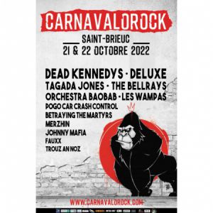 2022 signe le grand retour du Festival Carnavalorock dans la mythique salle de Robien à Saint-Brieuc ! Rendez-vous les 21 & 22 Octobre avec Dead Kennedys, Deluxe, Les Wampas, Tagada Jones, The Bellrays, Orchestra Baobab, Merzhin et de tant d'autres groupes qui feront trembler les murs de Saint-Brieuc !