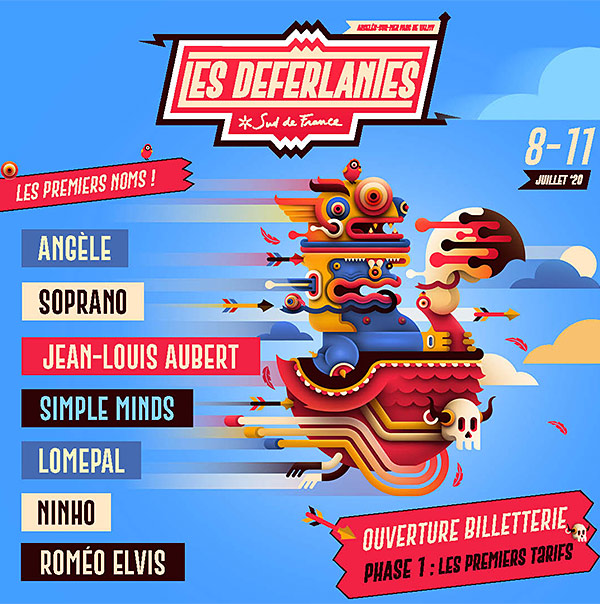 Les Déferlantes Sud de France 2020, 14ème édition vous donne rendez-vous au Parc de Valmy à Argelès-sur-mer du 8 au 11 juillet 2020 La mer, un château, les vignes pour seul décor. Quatre jours de musique, de partage, de sourires, de rencontres et de découvertes sous le soleil catalan... Vivement l'été! LE PROGRAMME * MERCREDI 8 JUILLET : Lomepal - Gwen Stéphanie (dante unique en france !) Sum 41 * JEUDI 9 JUILLET : Simple Minds, Ninho, Jean Louis Aubert Ben Harper & The Innocent Criminals, Tones and I * VENDREDI 10 JUILLET : Angèle, Roméo Elvis , Black Eyed Peas, Vitaa & Slimane * SAMEDI 11 JUILLET : Soprano Rilès, Iziza OUVERTURE DES PORTES à 14h30, sous réserve de modification ACCÈS/BILLETTERIE : Un e-billet doit être imprimé en format A4 ou téléchargé sur votre téléphone au format PDF depuis la plateforme billetterie d'achat / un billet thermique (billet physique édité par les revendeurs billetterie) doit être présenté sous son format physique original. < Aucune photo, capture d'écran ou photocopie de billet ne sera acceptée à l'entrée du Festival. < En cas de litige, une pièce d'identité pourra vous être demandée. PMR Le parc dispose de toilettes et d'une plateforme pour les personnes à mobilité réduite. Plus d'infos :