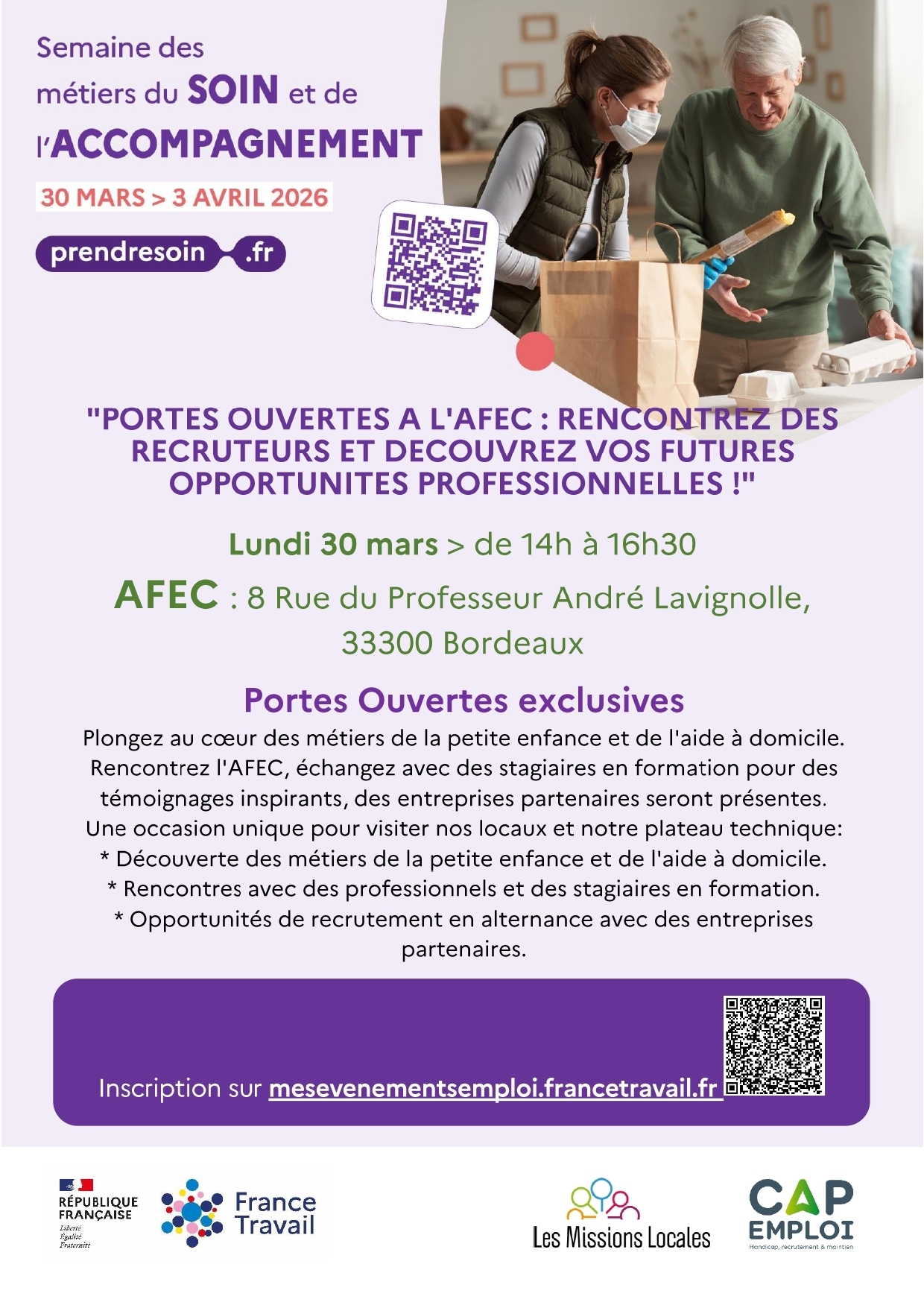 Inscription sur mes événements emplois ou par téléphone au 05 57 35 44 53, place limitées