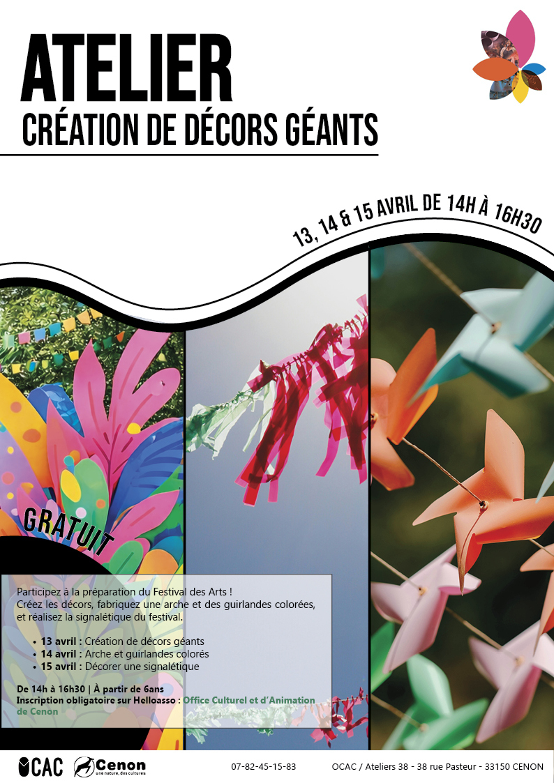 Pour s'inscrire rendez-vous sur HelloAsso : Office Culturel et d'Animation de Cenon