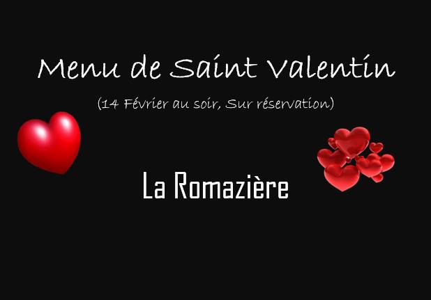 Menu de Saint Valentin, restaurant La Romazière, Challans.