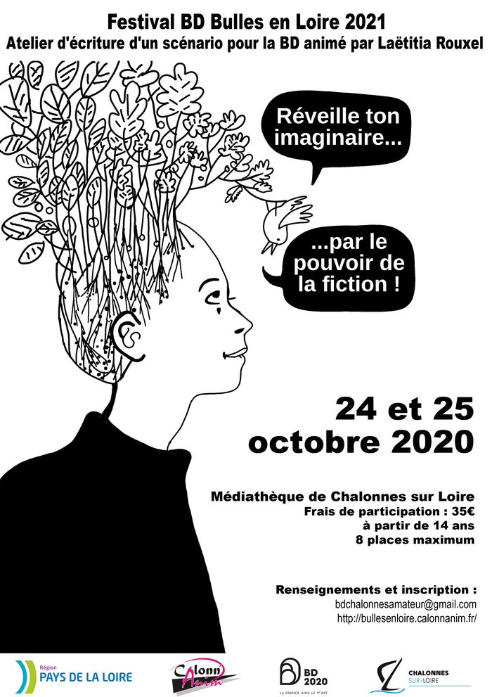 Atelier d'écriture de scénario de BD animé par l'autrice bretonne de BD Laetitia Rouxel autour du thème "Le réveil de l'imaginaire par le pouvoir de la fiction" destiné aux amateurs à partir de 14 ans : élaboration d'un synopsis, mise en forme de l'histoire, choix des personnages et création de 3 planches.