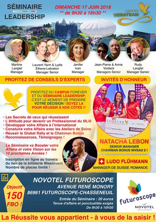 Ne manquez pas ce week-end de rêves pour vous aussi faire partie des Leaders de Forever ! Nous vous préparons un événement inoubliable pour clôturer le Campus organisé par notre partenaire FOREVER.