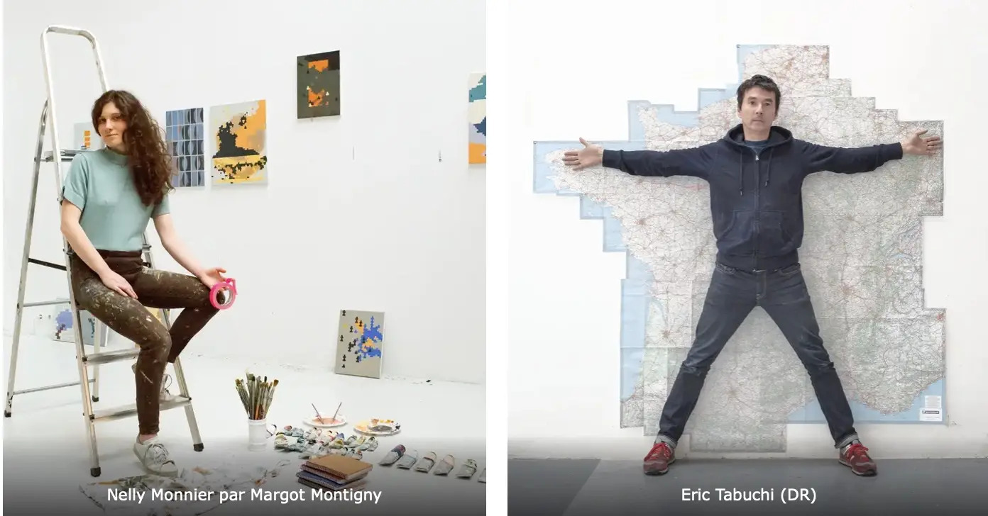 Les Deux artistes Nelly Monnier et Eric Tabuchi présentent leur projet 'Atlas des Régions Naturelles', une encyclopédie photographique du bâti et des paysages vernaculaires du territoire français. "Éric Tabuchi et Nelly Monnier se sont donnés la mission de photographier les 450 régions naturelles de l’Hexagone. Au coeur de leur exploration, les deux artistes s’attachent à nos manières d’investir le paysage, de l’habiter, de le façonner. Les routes, les habitations, les commerces, la typographie des enseignes, les noms des villages : ils traquent à la fois les invariants, les choses typiques et les écarts à la norme − qui, croisés, définissent une physionomie de nos modes de vies et de nos identités. D’autres avant eux se sont essayés à l’analyse de cette littérature du paysage. Eugène Atget ou Walker Evans, ont partagé la même passion pour la poésie de ces objets architecturaux ordinaires, autrefois jugés « indignes » : la ponctuation des fenêtres, des vitrines ou des enseignes est porteuse de récits, d’imaginaire et d’informations". (DP exposition 'L'Invention d'une histoire vraie' /centre d'art de GwinZegal).