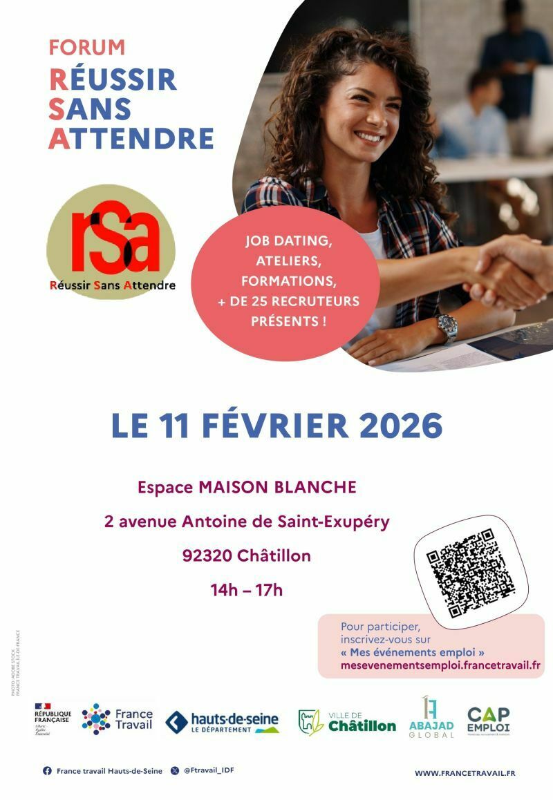 - De 13H30 à 14H00 : mot de bienvenue des officiels (Mairie de Châtillon, France Travail, Cap emploi et ABAJAD)