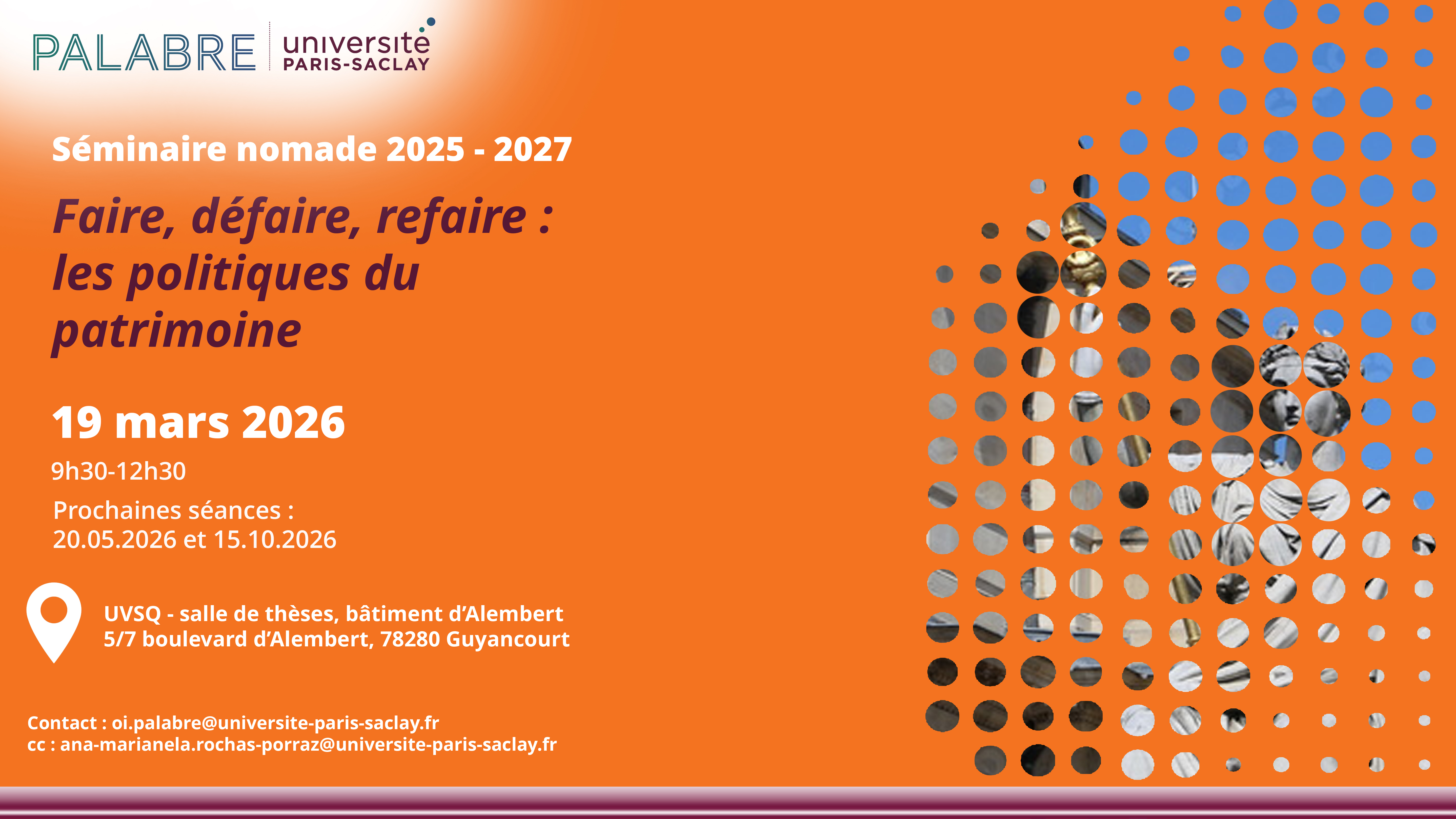 Inscription obligatoire : https://admin-sphinx.universite-paris-saclay.fr/v4/s/yzllxfNaeb Pour toute question : [email protected]