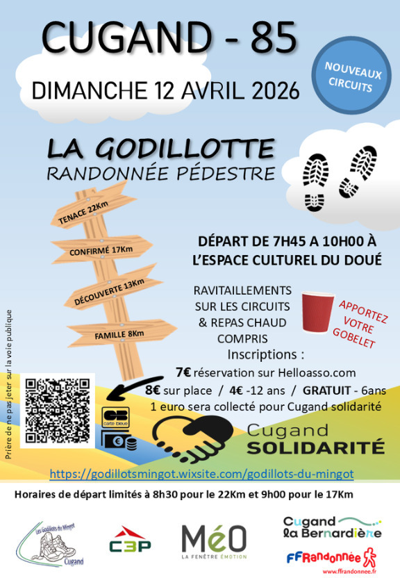 Vous cherchez que faire à Cugand ? Parcourez notre agenda pour trouver un concert, une expo, un spectacle, un café ou une sortie dans votre ville. Il y en a pour tous les goûts et pour tous les âges ! Des visites de parcs en famille aux soirées étudiantes les plus branchées dans les discothèques de Cugand, trouvez l'événement qui vous correspond.