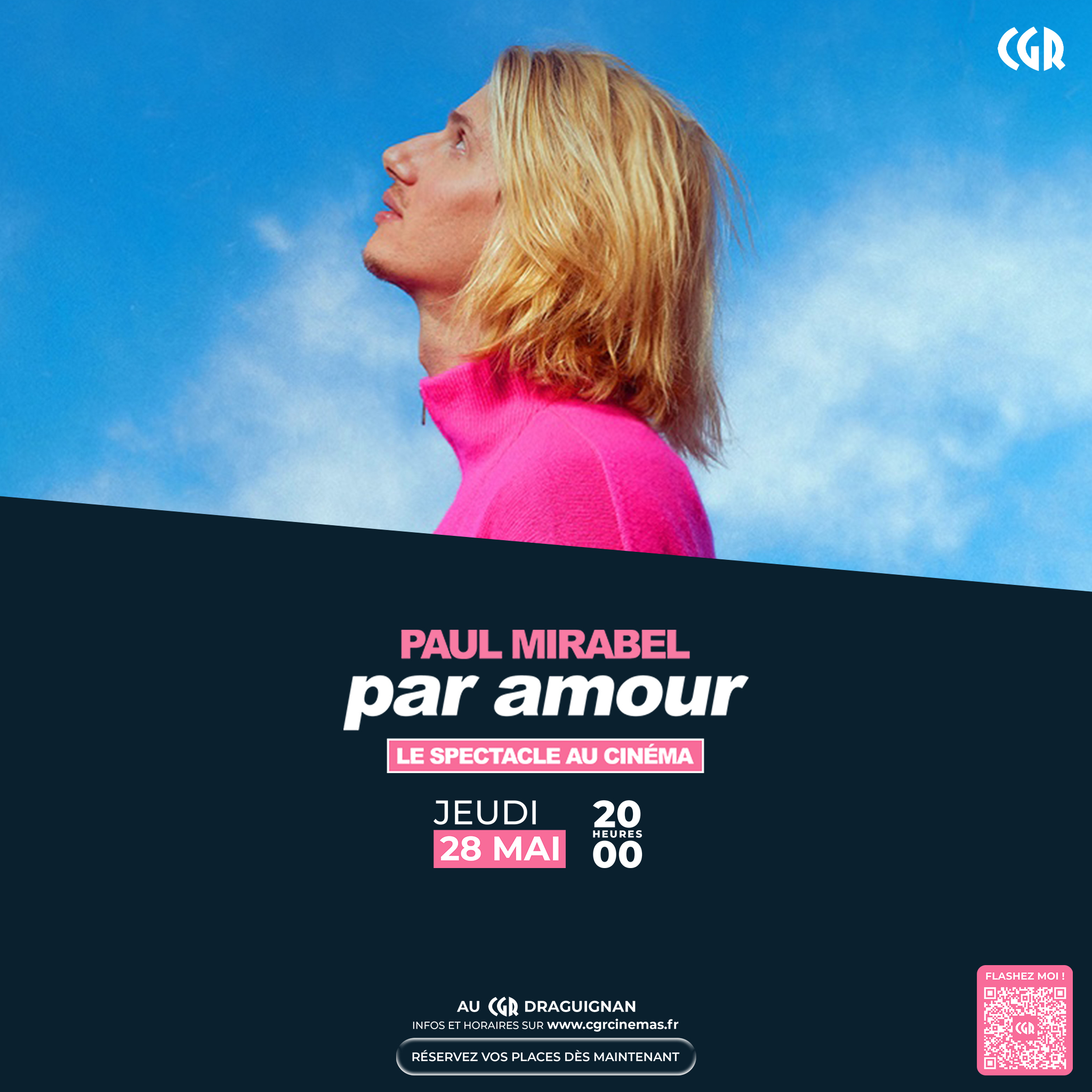 Réservation de votre billet en ligne (cgrcinema.fr) ou directement au cinéma.