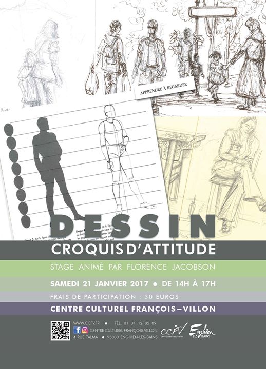 Le samedi 21 janvier 2017, Florence Jacobson, artiste peintre et professeur au CCFV, animera un atelier dédié au dessin et croquis d’attitude.