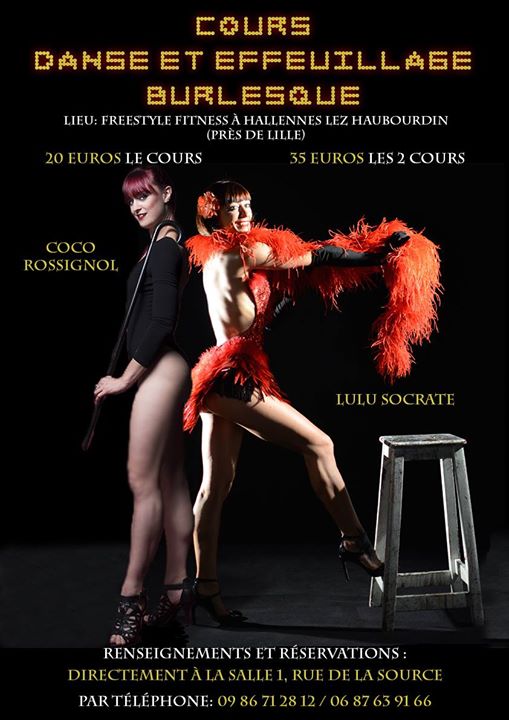 De 15h30 à 17h: Cours d'effeuillage burlesque avec Lulu Socrate, performeuse new burlesque . On travaillera les bases des archétypes féminins, des attitudes et des postures: pin up glamour, libertine provocante, lolita innocente ou femme fatale....le but de ce cours est de développer son pouvoir de séduction, et surtout apprendre à mettre à distance ces archétypes de femmes glamours en les jouant avec beaucoup d'humour.... car avoir confiance en soi, c'est savoir jouer avec les codes de la séduction et surtout de pouvoir en rire pour mieux se libérer des diktats imposés par la société....