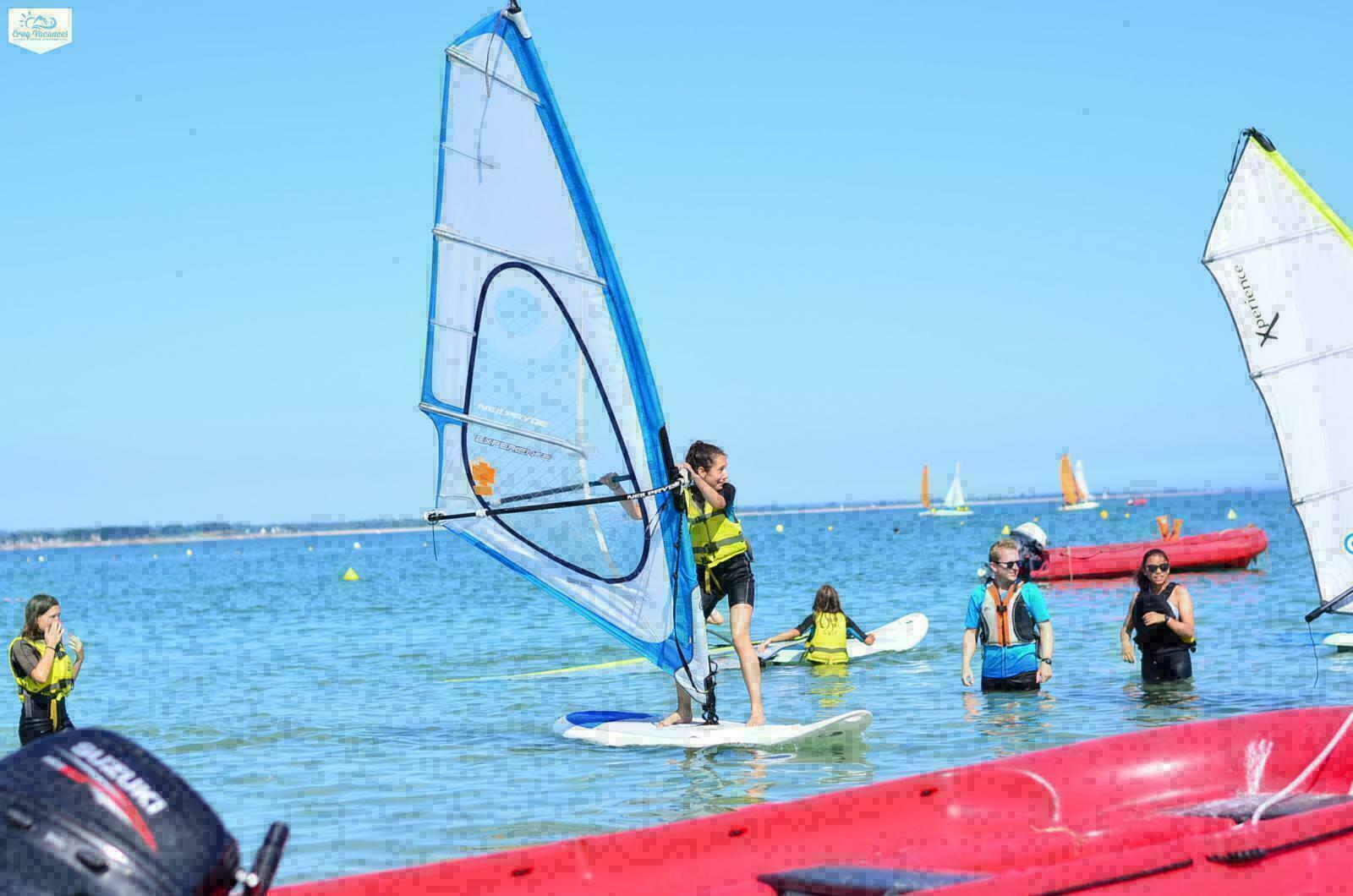 Débutant(e) ou passionné(e), rendez-vous dans le Finistère Sud, pour goûter aux joies de la glisse. Tu veux embarquer en équipage ? Alors viens affronter l’océan Atlantique au cours de deux séances de catamaran qui te permettront de découvrir la navigation tout en t’adaptant aux courants et aux vents marins. Une activité idéale pour t’initier à la voile tel un skipper du Vendée Globe ! Tu profiteras également d’un maximum de vitesse et de sensations, en toute sécurité, au cours d’une séance de bouée tractée. Nous te proposons de découvrir ou redécouvrir le paddle au cours d’une séance sur la rivière de Pont-l’Abbé à la découverte des alentours de l’Île Chevalier. Le programme des séances pourra être modifié et adapté en fonction des marées, des conditions météorologiques et de l’état de la mer afin de garantir ta sécurité. Des jeux, des veillées et des animations locales (selon programmation) organisés par l’équipe viendront compléter le programme de ton séjour à l’Île-Tudy. Une semaine de glisse pleine de sensations t’attend !