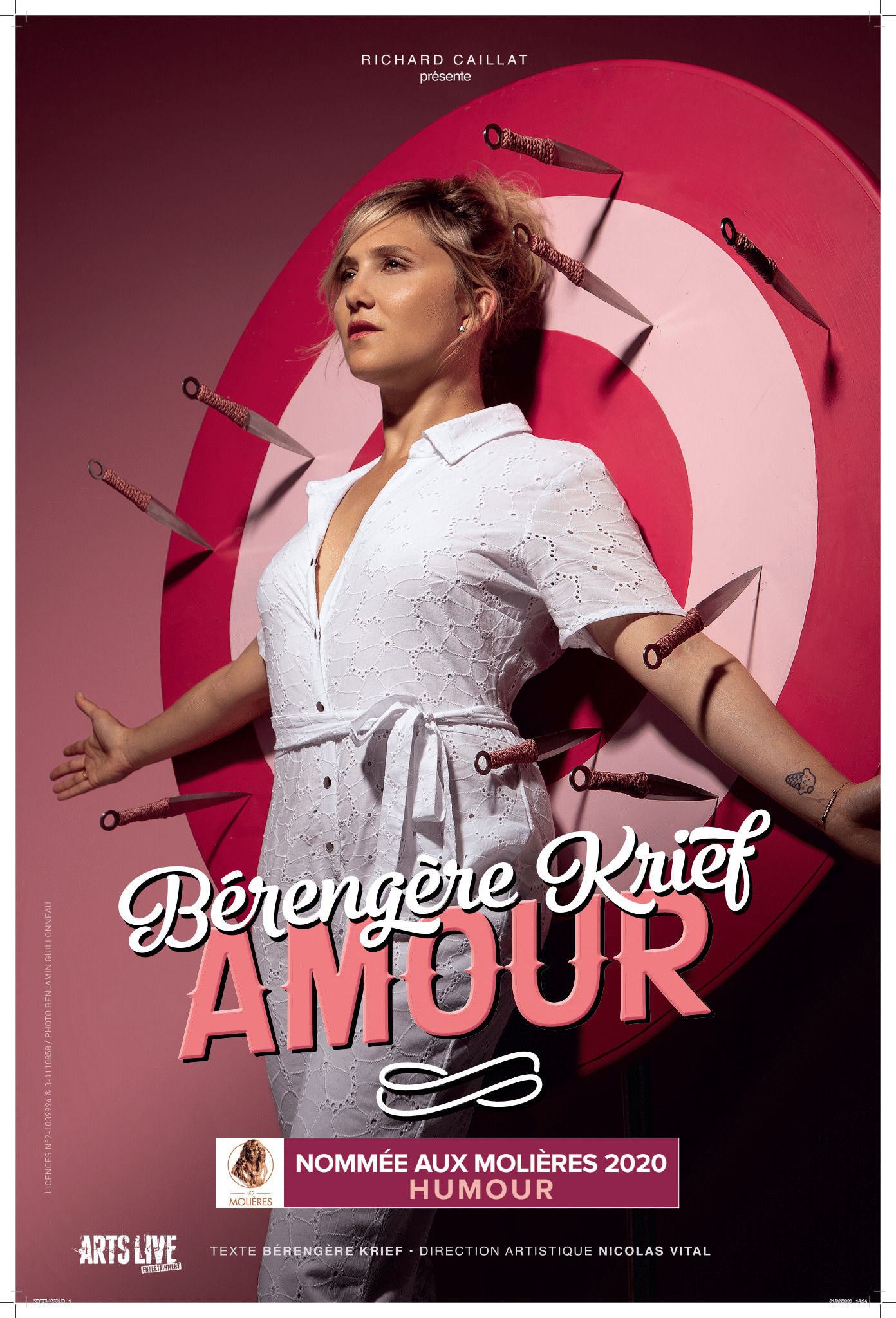 Amour, le nouveau spectacle de Bérengère Krief, marque la renaissance scénique de la comédienne. Pour la première fois, elle délaisse l'image girlie qui lui collait à la peau pour se révéler telle qu'elle est : forte et fragile à la fois, piquante et pleine d'autodérision. Dans une mise en scène quasi féerique, elle questionne avec justesse et sincérité sa relation au sentiment amoureux et à la féminité depuis son adolescence, de sa chute après une rupture douloureuse à la quête de soi-même, le tout sur fond de Nicole Croisille, Dalida ou Aya Nakamura. Des personnages au contenu, tout y est aussi beau que drôle, sans aucun pathos, mais avec beaucoup d'émotion et d'espoir. Cet Amour-là se savoure tel un bonbon, doux et acidulé, et il fait terriblement du bien.