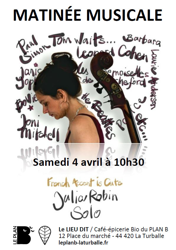 Seule avec sa contrebasse, elle vous chante sa vision folk de l'amour sous toutes ses formes : la pureté de la rencontre (Les Mots Bleus de Christophe), la rancoeur de la séparation (Can't Stand Losing You de Police), l'amour bref (Chelsea Hotel de Leonard Cohen), ou celui d'une vie (Here There And Everywhere des Beatles), l'idéal (Johnsburg Illinois de Tom Waits), ou le banal du quotidien (It Is Not Because You Are de Renaud)...
