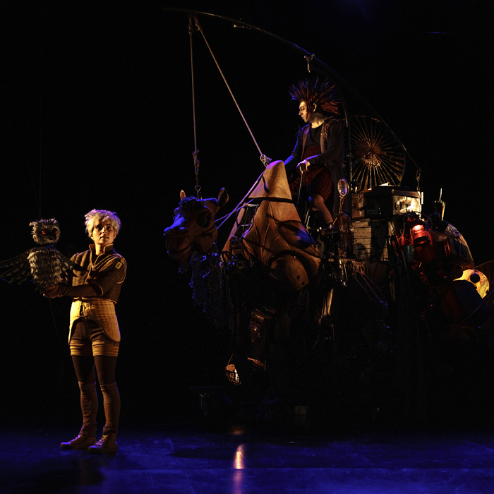 A la croisée du théâtre, de la musique et de la marionnette grandeur nature, A Dos de Chameau est une véritable embardée, un appel à l’aventure pour petits et grands ! Là où les plus jeunes s’amuseront de ses drôles de personnages, les adultes y liront une fable philosophique au sujet de la quête de sens, et de la quête de soi. L’occasion également de (re)découvrir la splendeur des créatures mécaniques articulées de l’Ile de Nantes grâce à l’intervention experte de l’atelier de la compagnie « La Machine » dans la construction de la pièce maîtresse du spectacle : un chameau à taille réelle, né de ferraille, de cuir, de tissages et de tous ses souvenirs entassés dans son dos.