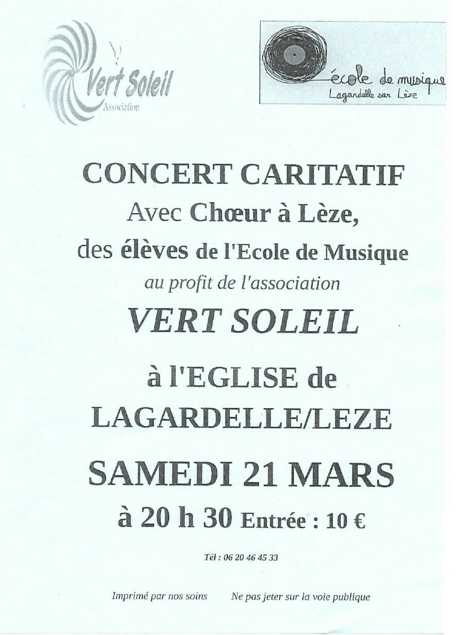 Entrée 10 € au profit de l’association Vert Soleil