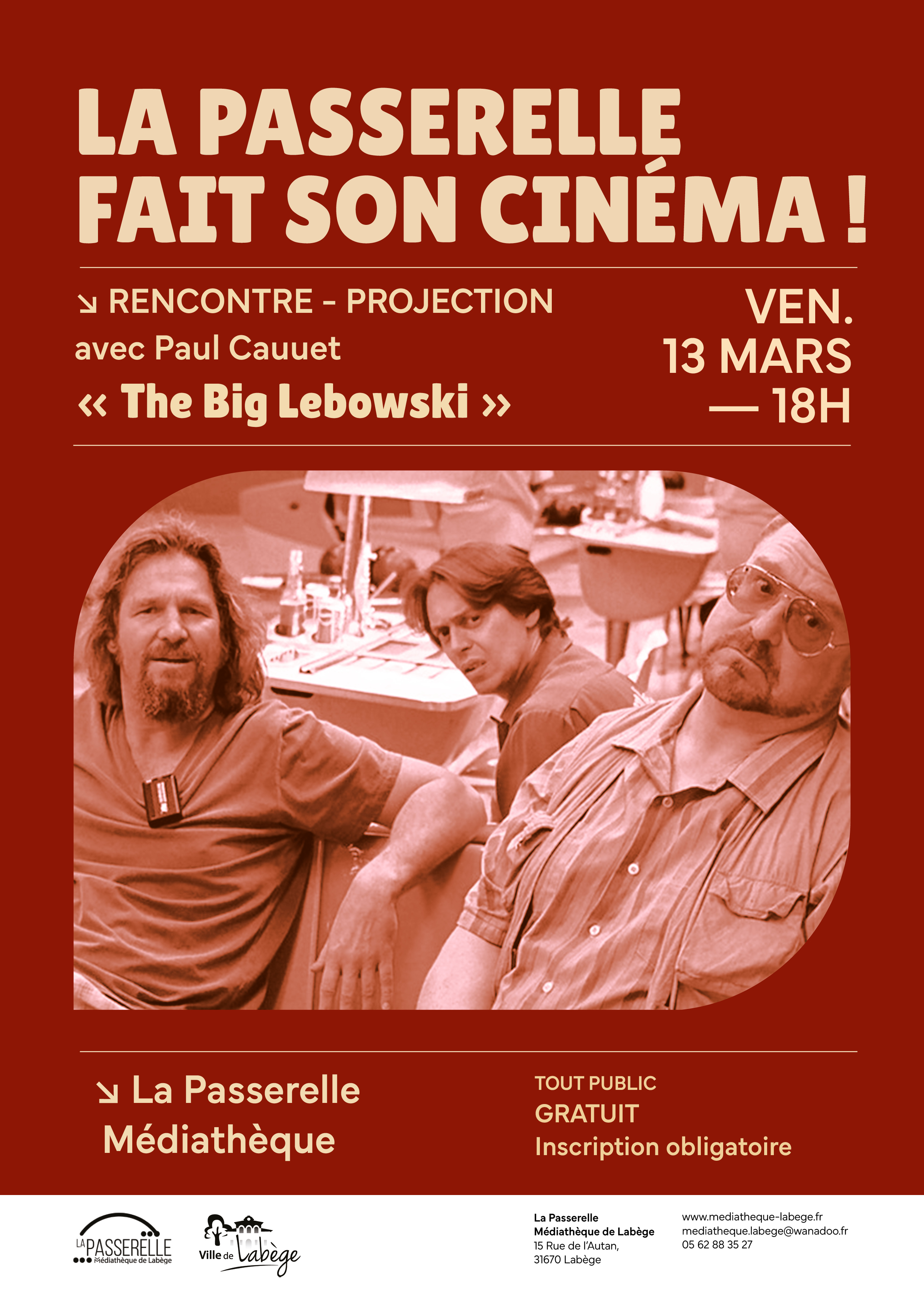 Cette désormais classique production des frères Coen, met en scène un Jeff Bridge parfait en américain indolent fan de bowling, empêtré dans de truculents quiproquos et flanqué de ses deux partenaires hauts en couleurs. Le film sera projeté à la médiathèque, précédant un échange avec le dessinateur.