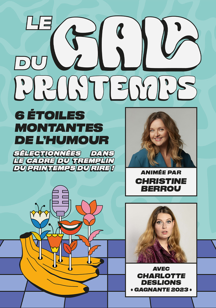 6 étoiles montantes du rire sélectionnées sur 200 candidatures en Europe francophone dans le cadre du Tremplin du Printemps du Rire : Ameziane, Ethan, Gaëtan, Lola, Louise & Mell... Mais pas que ! Une marraine que l’on ne présente plus pour accompagner ces jeunes talents sur la scène : Christine Berrou, ainsi que la grande gagnante du Tremplin 2023 Charlotte Deslions qui présentera un passage de son nouveau spectacle Salle d’attente !