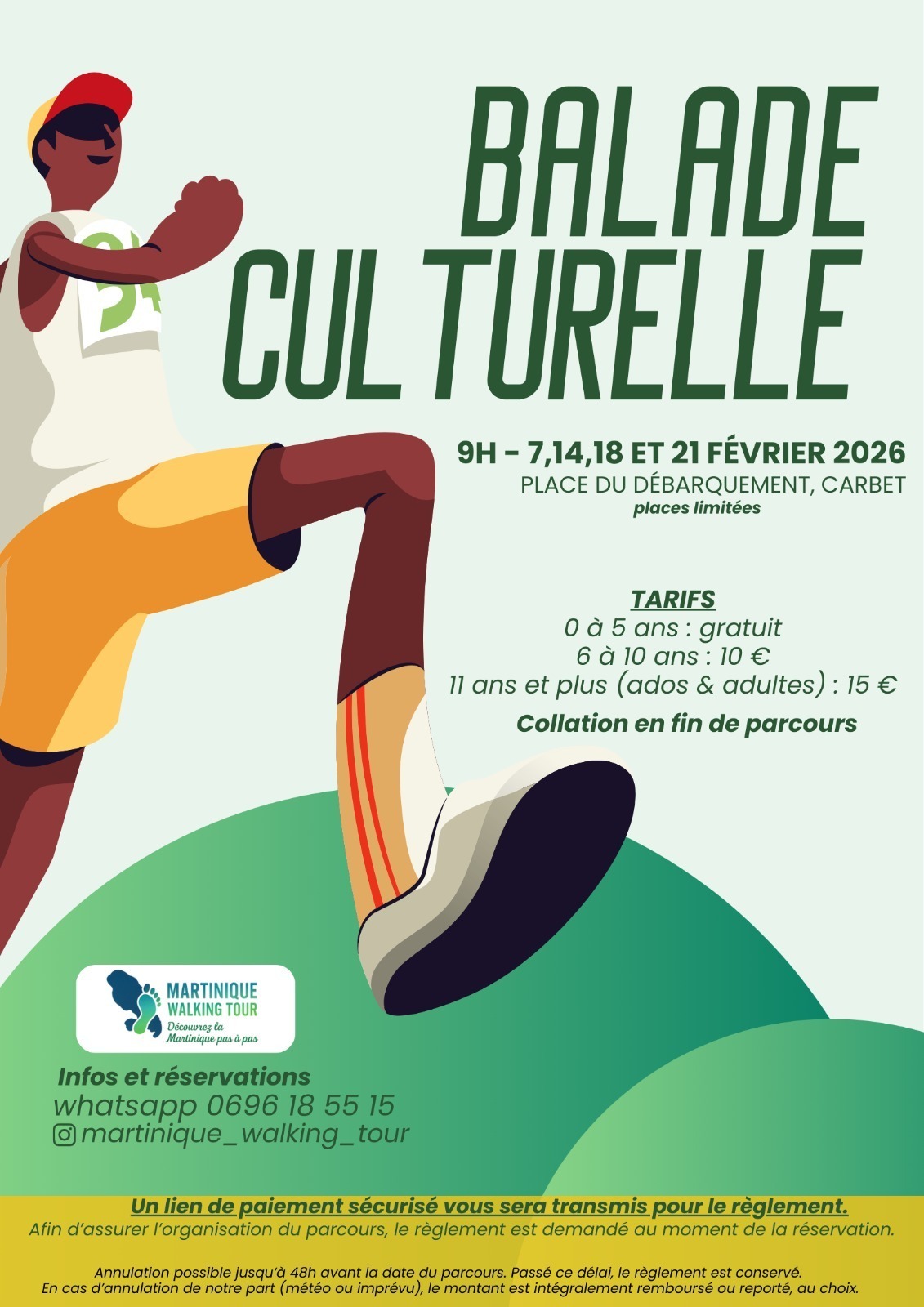 Infos et réservation via WhatsApp : Tarif 0-5 ans : gratuit / 6-10 ans : 10€ / 11 ans et plus : 15€