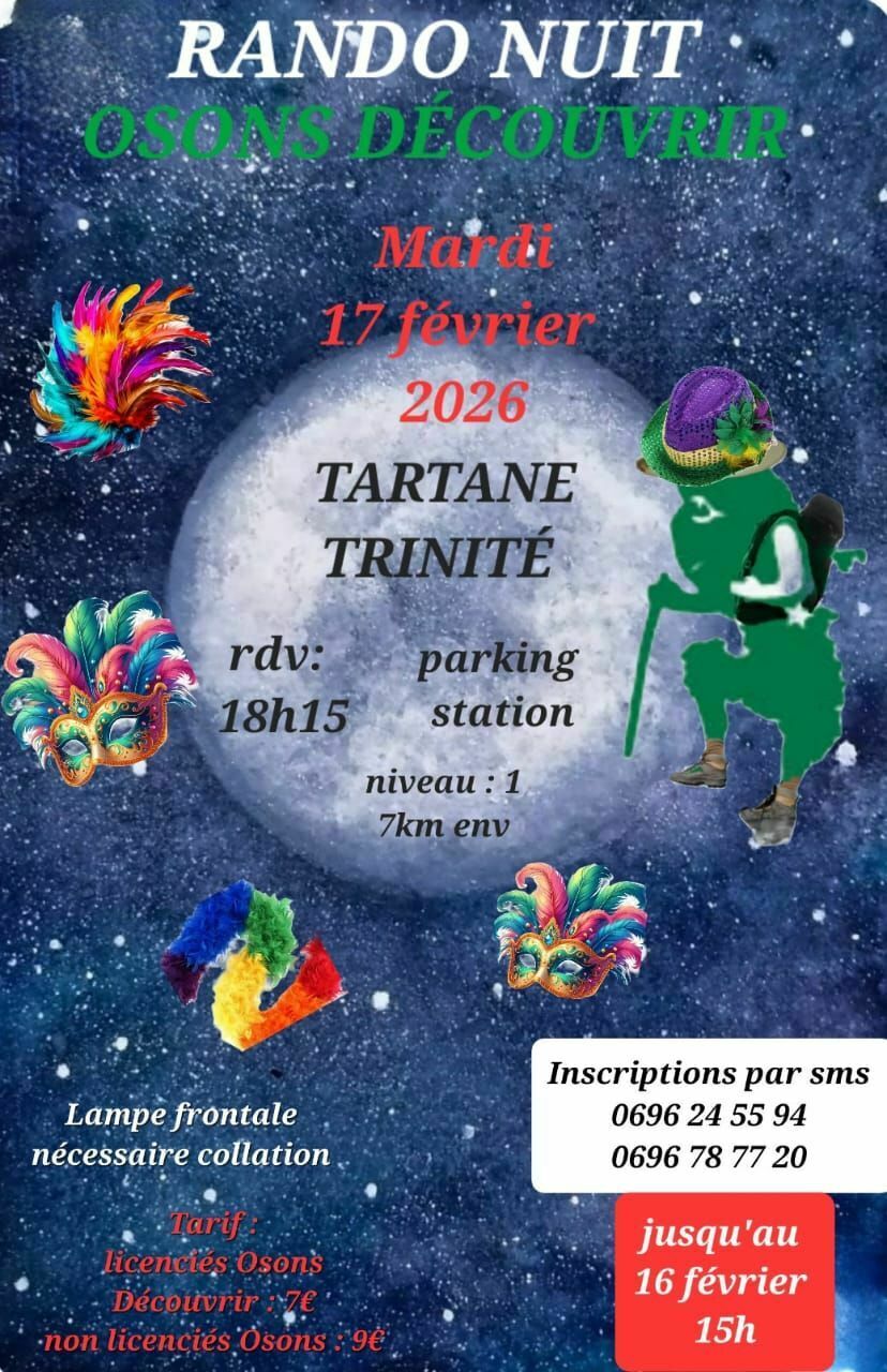 Inscription jusqu'au 16 février 15h / Tarif : Licencier Osons Découvrir : 7€ / Non licencier Osons Découvrir 9€