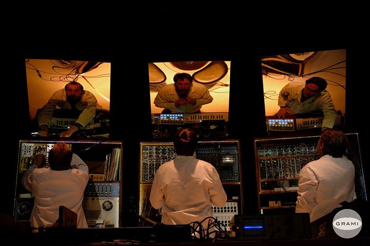 Trois messieurs en blouse blanche entrent en scène avec l’assurance des scientifiques. Ils forment le Groupe de Recherche et d’Analyse de la Musique et des Instruments et s’apprêtent à nous conter l’histoire probable de la musique électronique.