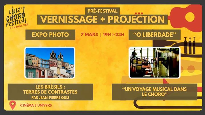 L'association Açaí, en partenariat avec ASPAS / Solidarité Provence-Amérique du Sud et Association Envol Brasil, propose aux lillois un pré-festival en guise de mise en bouche du Lille Choro Festival. Les hostilités commenceront avec un vernissage d'une exposition de photographies et une projection au cinéma l'univers !