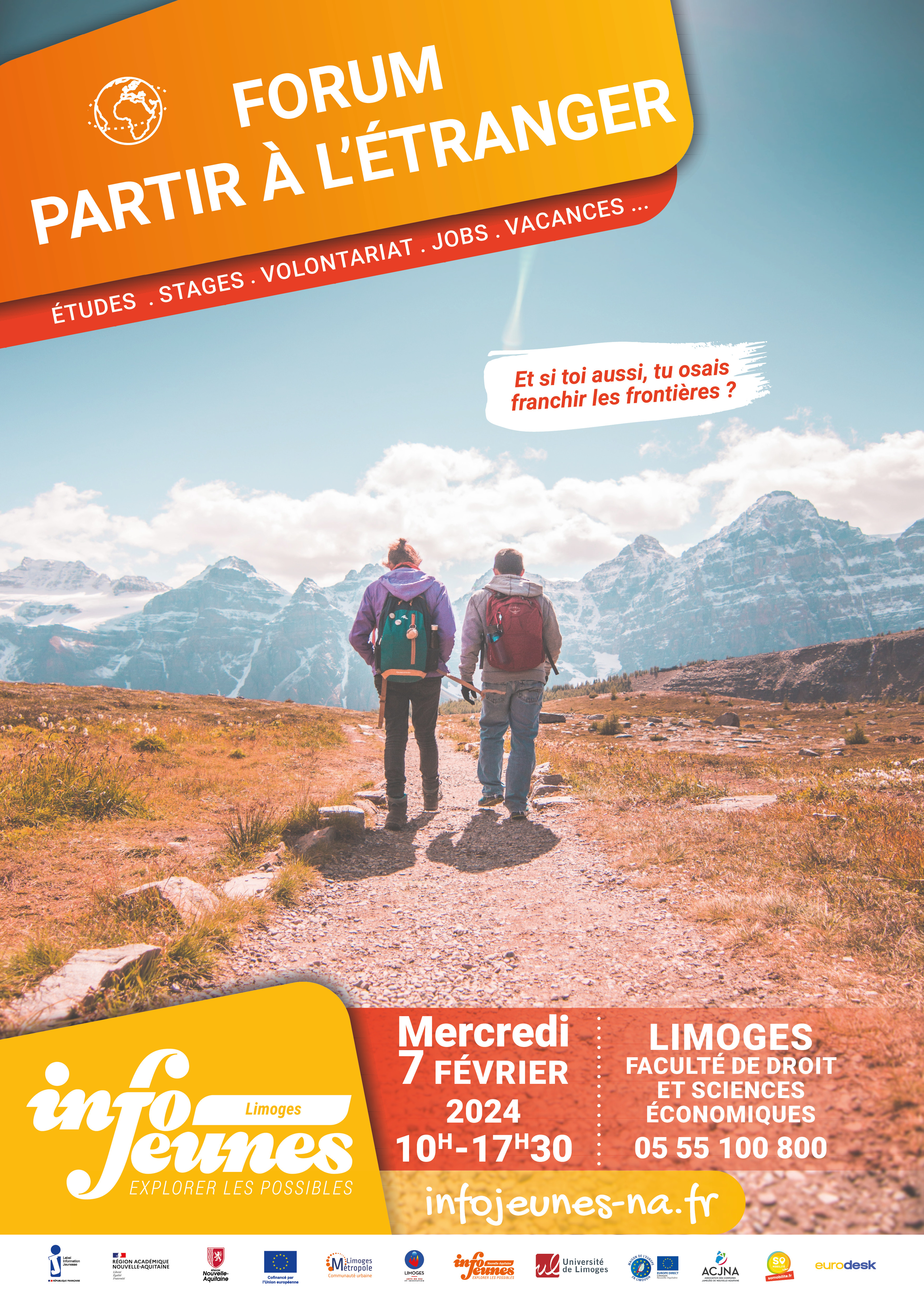 Tu es en Terminale ou en cours de réorientation ? En accueil libre accès dans l'après-midi, Info Jeunes te donne les bonnes astuces et ressources locales pour booster ton dossier Parcoursup et tes candidatures (identification de ses atouts, conseil sur la candidature, mise en relation avec des professionnels, informations sur différents dispositifs de mini stages et immersions pros, ressources numériques, suggestions d'ouvrages disponibles à la BFM, connaissance des métiers/formations post-bac, etc.). L'échange pourra également s'effectuer en privé derrière le stand dans l'espace convivialité du hall de la BFM. Une information complémentaire sera apportée sur les autres thématiques Info Jeunes (projet d'année de césure, départ à l'étranger, jobs d'été, BAFA, loisirs, etc.).