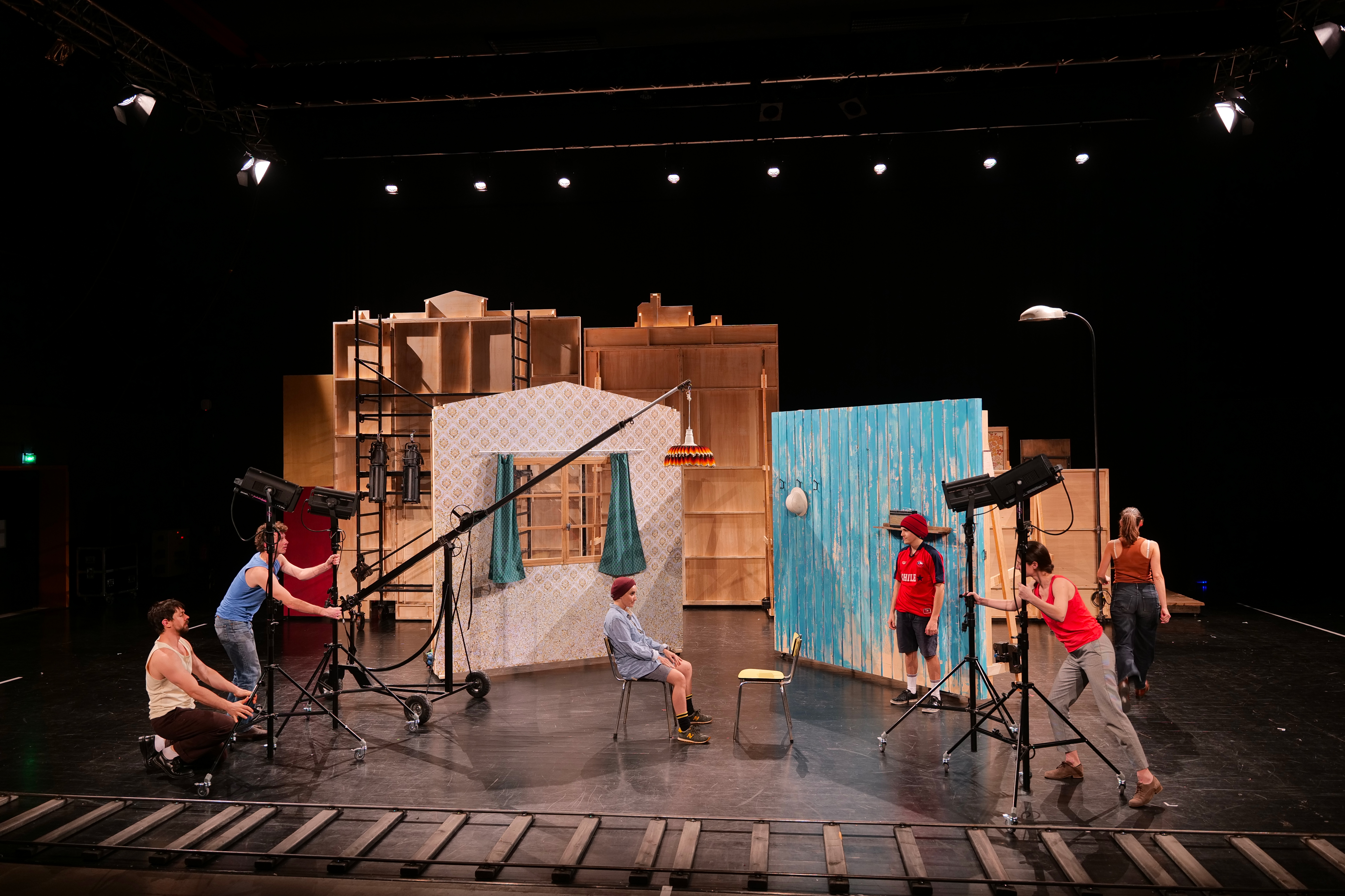 Nous sommes en 2054, dans un pays où un régime totalitaire s’est peu à peu imposé. La liberté de création est fortement entravée. Nous sommes dans un studio de cinéma qui a été brutalement fermé. Depuis quelque temps, des citoyen·ne·s se sont regroupé·e·s pour investir ce lieu et en faire un refuge libre, engagé et poétique afin de résister en faisant du théâtre.
