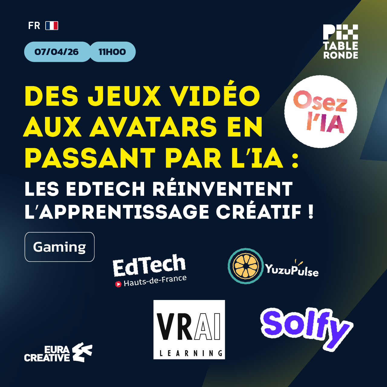 Table-ronde PIX 2026 « Des jeux vidéo aux avatars en passant par l’IA : les Edtech réinventent l’apprentissage créatif ! »