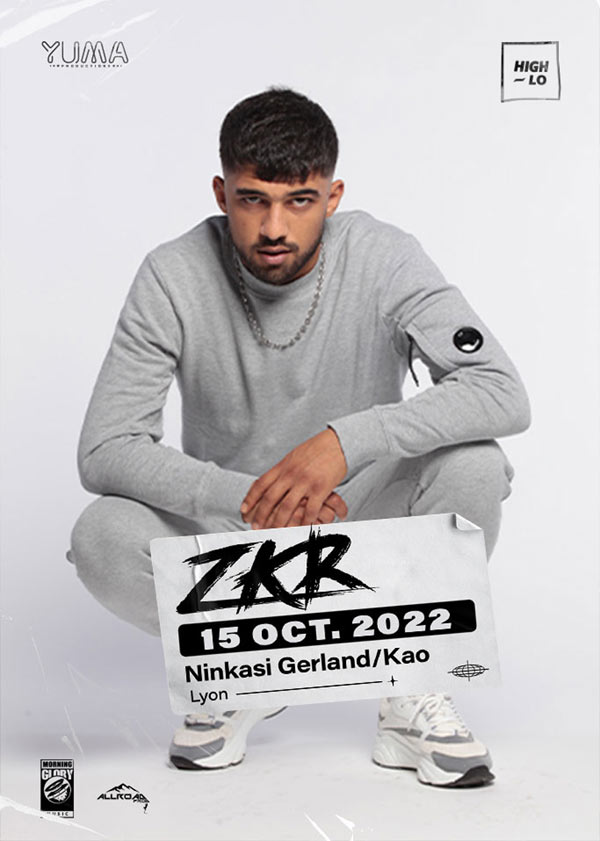 ZKR Déterminé, j'viens choquer la France ». Cette phrase qu'il a prononcé dans un freestyle d'anthologie sur Skyrock pourrait résumer l'arrivée fracassante du rappeur ZKR, originaire de Roubaix, sur la scène rap. Une prouesse, le signe d'un vrai talent quand on sait qu'on ne compte même pas sur les doigts d'une main, les artistes venus du Nord, qui ont réussi à se faire un nom au niveau national.Trois consonnes, pas de voyelles, son nom de scène est aussi efficace que sa musique ; ZKR va à l'essentiel et remet à l'ordre du jour un phrasé précis, des schémas de rimes complexes et un flow d'une musicalité puissante pour son jeune âge. ZKR, c'est l'esprit originel du hip-hop, des battles, où ça transpire littéralement pour faire rimer sa vérité, c'est aussi les beats modernes et les feats avec les cool kids du rap français.Son premier EP Absent sorti en 2018, porté par le morceau « Demain ». S'en suit une série de freestyles 5 min, devenue sa marque de fabrique et dont les épisodes sortent en parallèle de ses titres officiels. « Encore un putain de son où j'fais mal à la prod », le Freestyle 5 min #8 sorti à l'été 2020 a passé les 40 millions de vues et le dernier en date, Freestyle 5 min #11, frôle les 10 millions de vues.Avec son premier album Dans les mains, dont « Romance criminelle », « Poursuite » feat Koba LaD et « Tu vois comment » feat PLK sont extraits, ZKR élargit son champ d'action, de la rue à un son un peu plus mainstream. L'artiste punche sur sa vie de rue dans l'esprit conscient de ceux qui l'ont précédé, avec insolence et sagesse. Les mineurs de moins de 16 ans doivent obligatoirement être accompagnés par leur tuteur légal : parents ou tuteur légal (pas sœur, frère ou autre). Pièce d'identité obligatoire pour entrer : carte d'identité, passeport, permis de conduire (photocopie ou photographie non acceptée.)