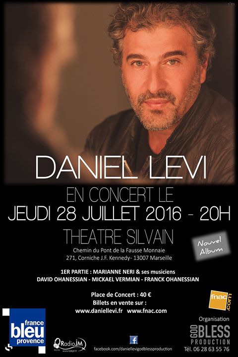 Daniel Levi donnera un concert inédit le 28 Juillet 2016 à Marseille, avec les chansons de son tout Nouvel Album accompagné de ses musiciens #concert #live