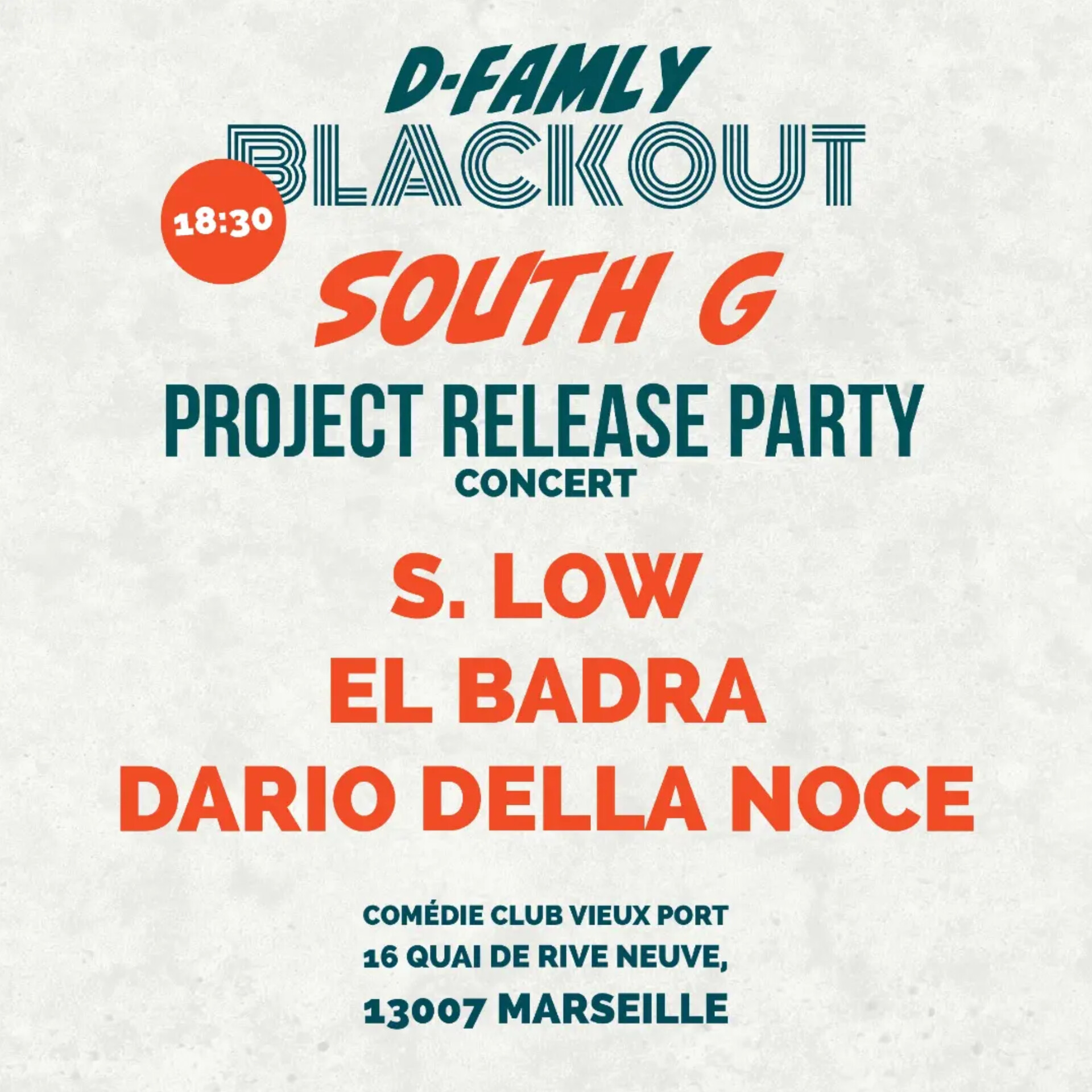 Soirée remplies de talentS Dj EL BADRA fera Son entrée avec en exclusivité la préSence de S.LOW ainsi que DARIO DELLA NOCE pépiteS prometteuSeS marSeillaiSeS pour un Show de feu en FAMLY!!