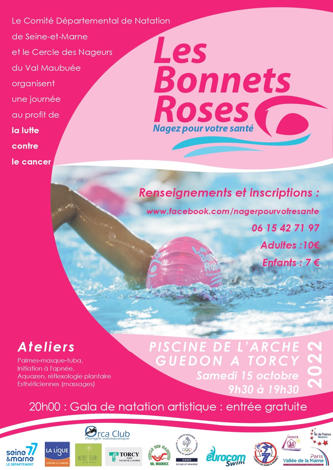 Manifestation de natation au profit d'associations qui luttent contre le cancer. Les fonds collectés lors de cette manifestation sont intégralement reversés aux associations LIGUE CONTRE LE CANCER et l'AVACS.