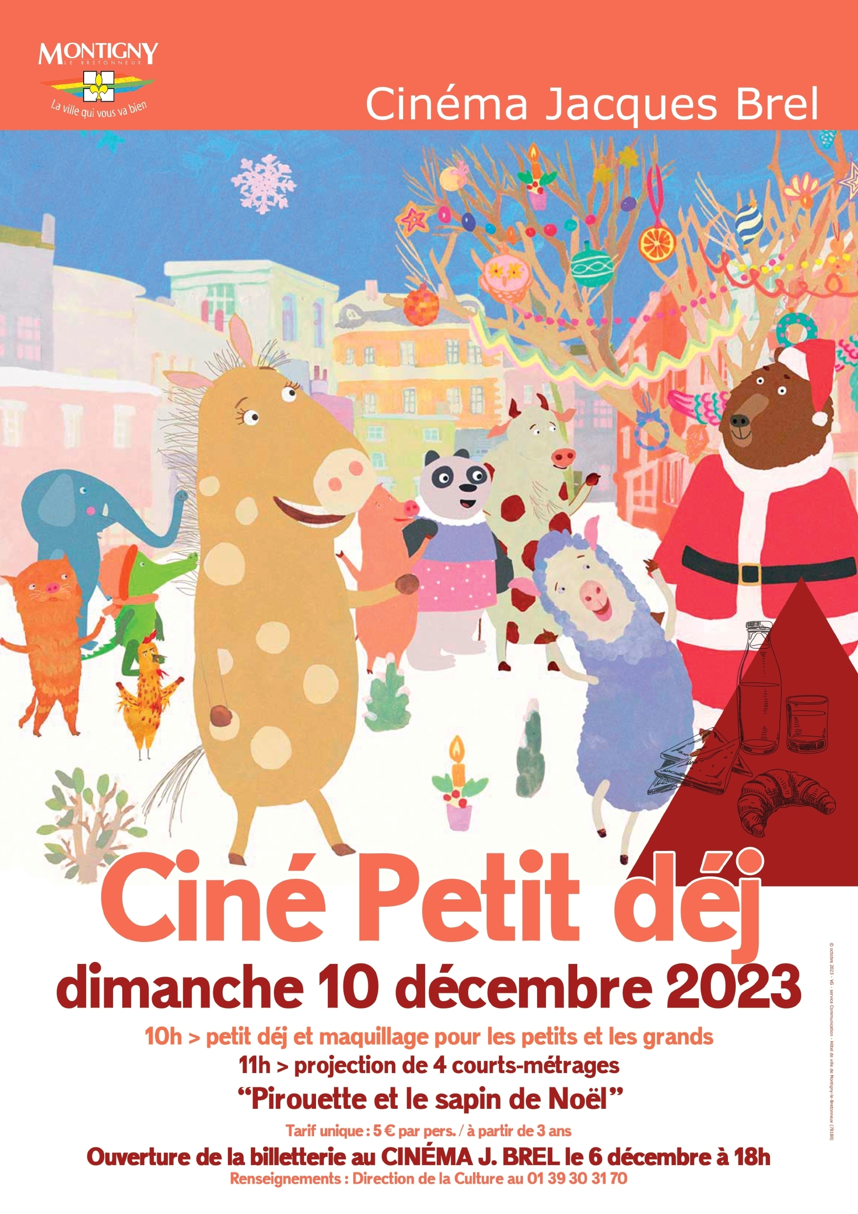 10h00 petit déjeuner pour petits et grands et stand maquillage 11h00 projection du film d'animation Ouverture de la billetterie le mercredi 6 décembre à 18h00 à la salle Jacques BREL