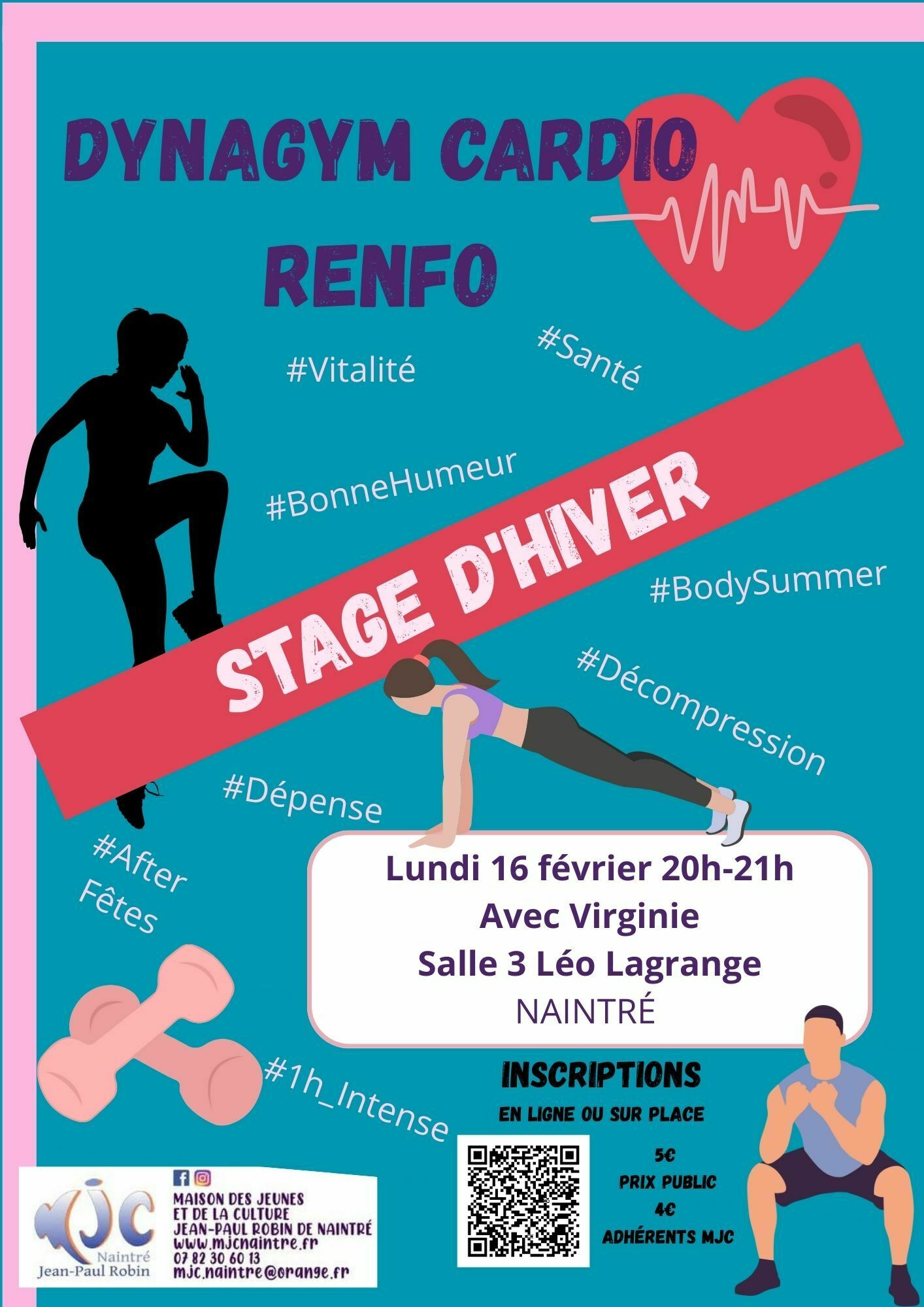 Rendez-vous en salle 2 du complexe Léo Lagrange. Prévoir des chaussures propres et une gourde d'eau.