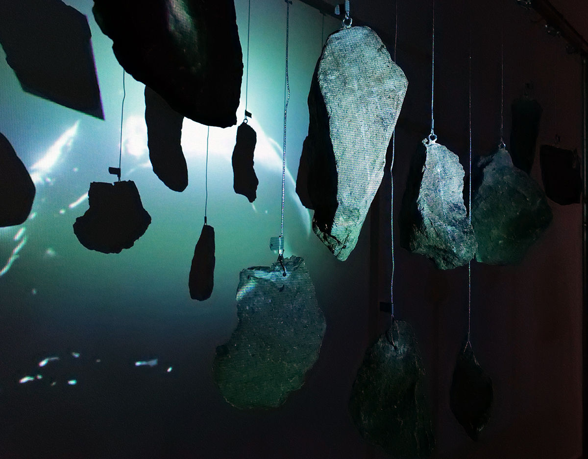 Installation visuelle et sonore, création de lithophone Justine Emard